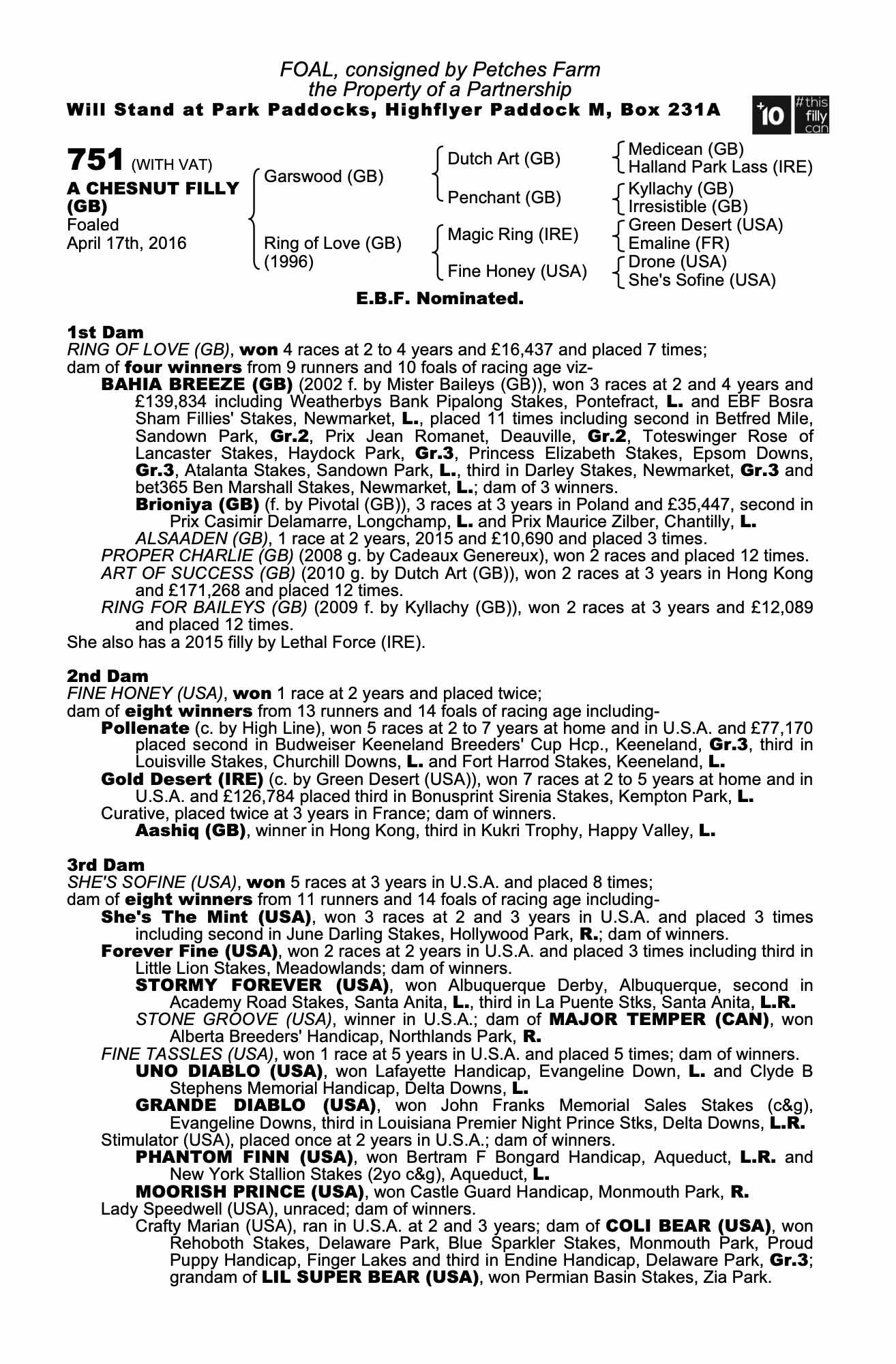 December Foal Sale 2018 lot 764 F. 2018, Petches Farm=>GR Bailey 32,000 gns