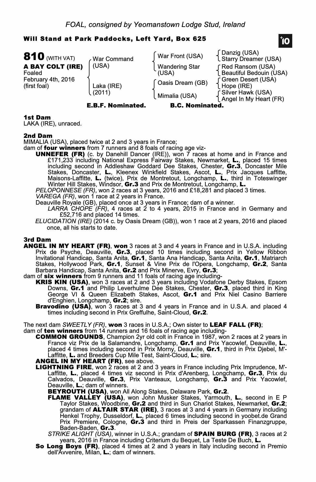 Consignor: Yeomanstown Lodge Stud, Ireland
