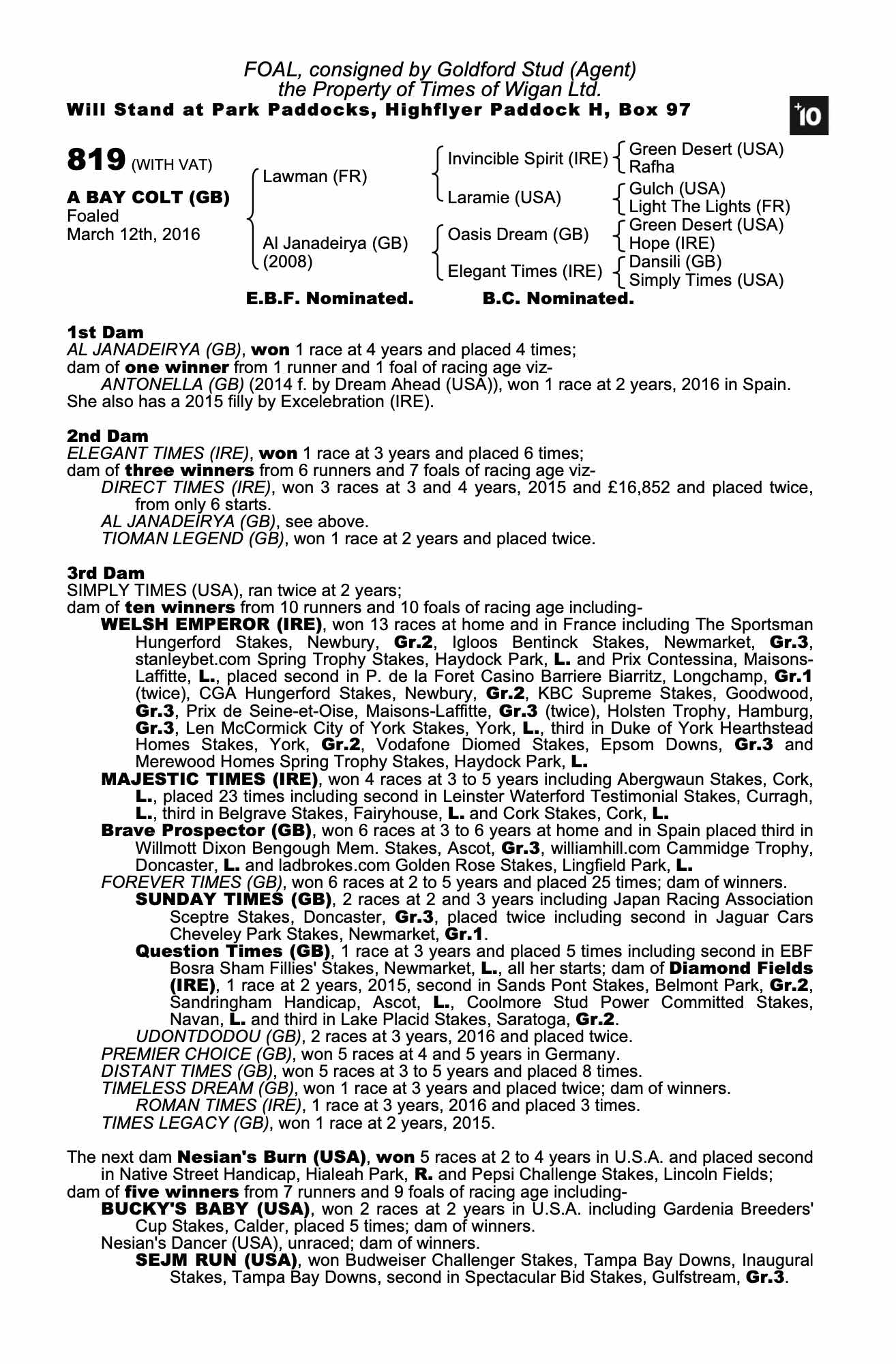 Guineas Breeze Up Sale 2016 lot 238 F. by Dream Ahead (USA) 2014, FEP Ltd.=>Eduardo Silva 14,000 gns