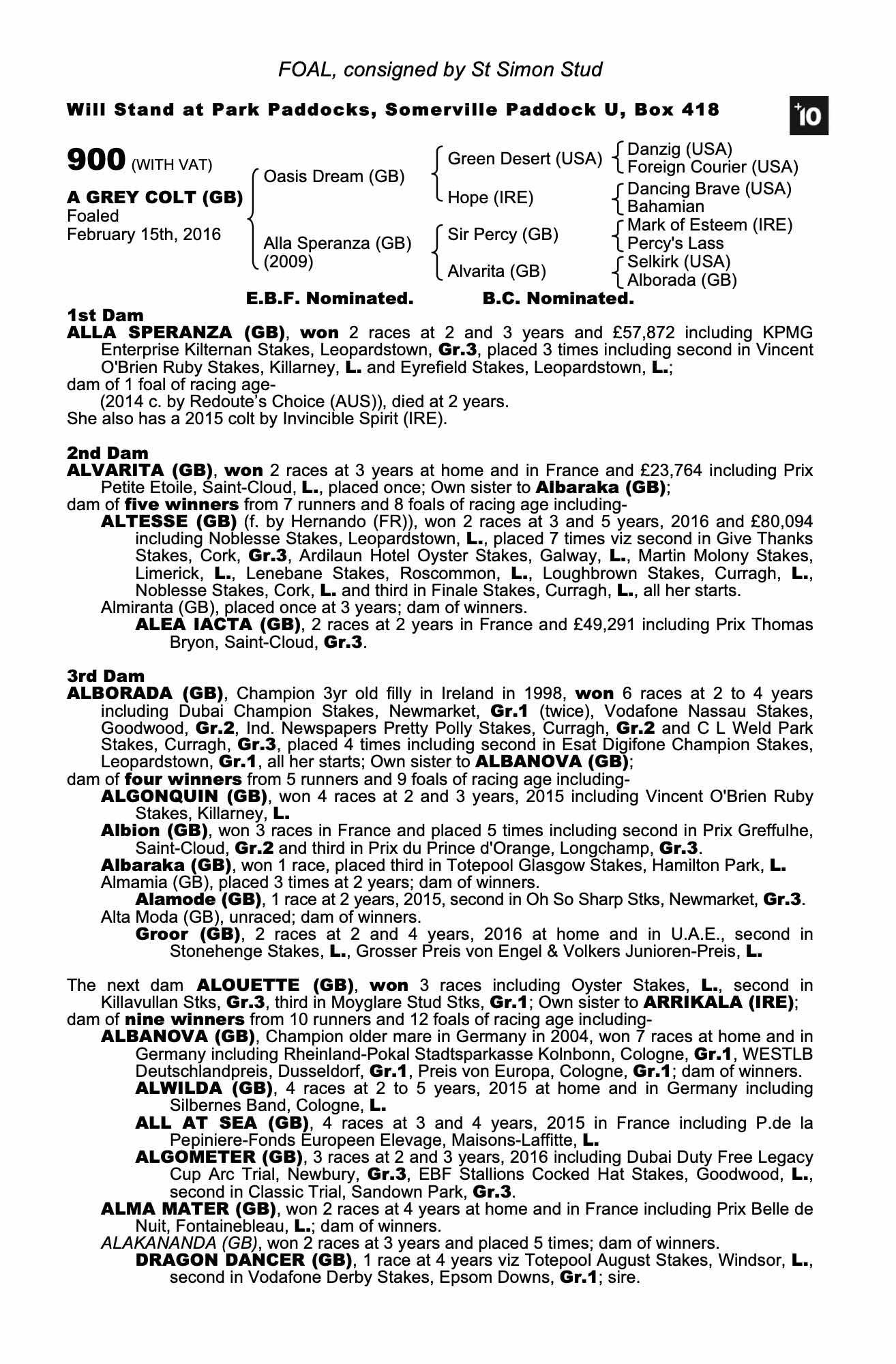 October Yearling Sale Book 1, 2016 lot 442 C. by Invincible Spirit (IRE) 2015, Staffordstown, Ireland=>Vendor 120,000 gns