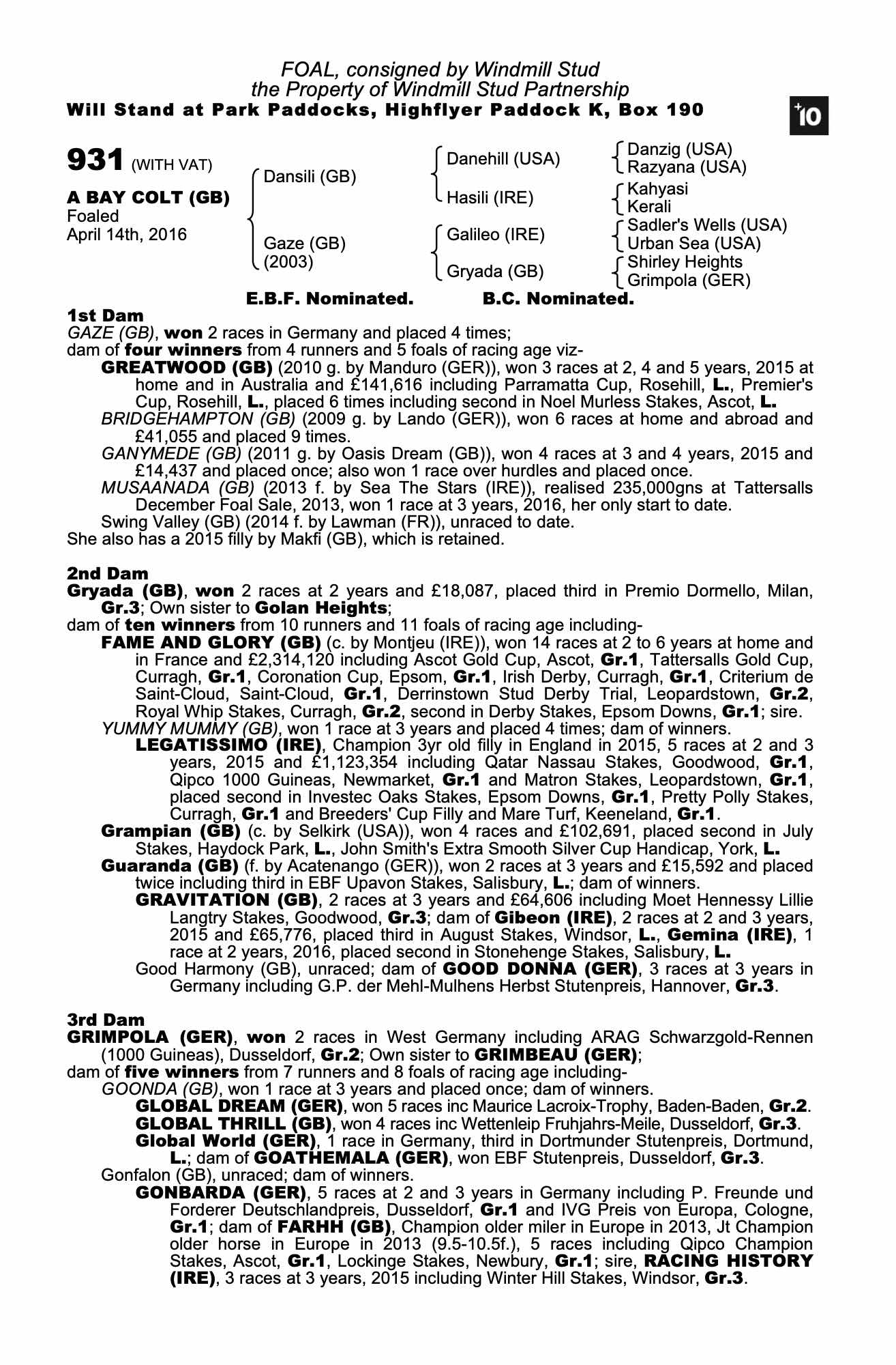 December Foal Sale 2017 lot 922 F. by Golden Horn (GB) 2017, Norris Bloodstock=>Vendor 50,000 gns