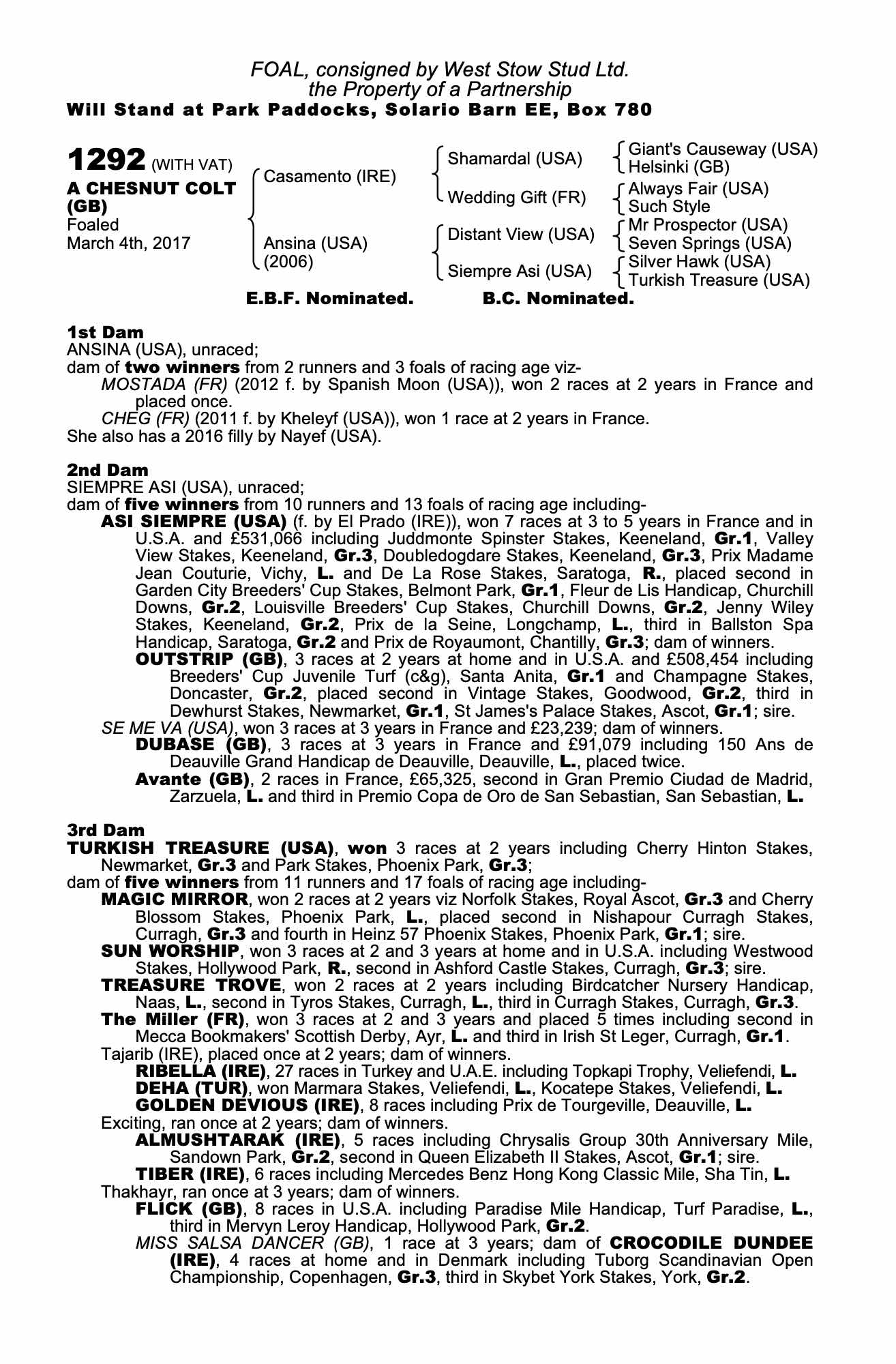 October Yearling Sale, Book 3 2017 lot 1863 F. by Nayef (USA) 2016, Keith Harte (Agent)=>Rebecca Dennis 1,200 gns