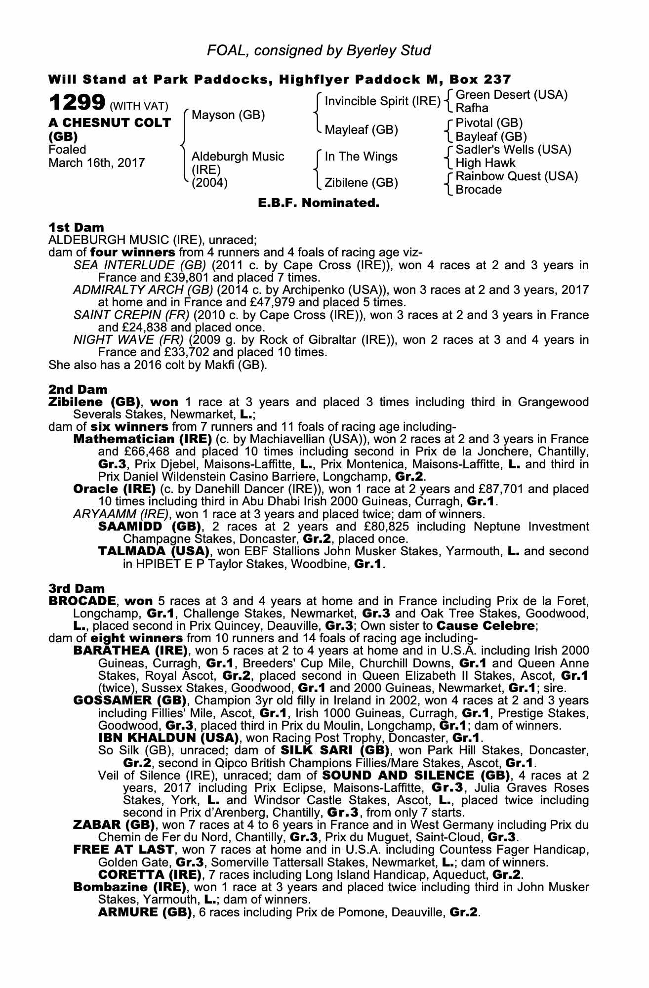 Consignor: Byerley Stud