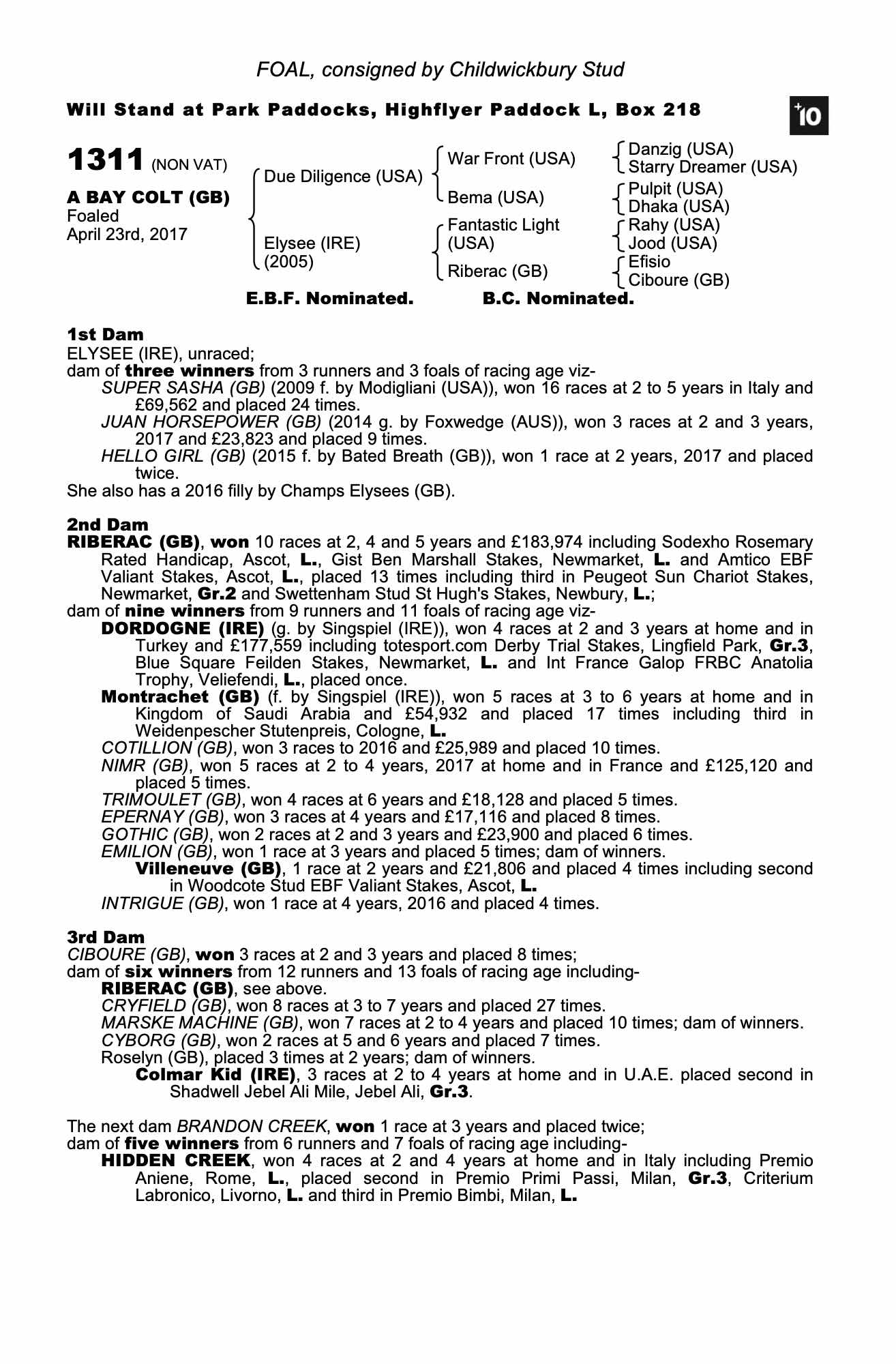 December Foal Sale 2016 lot 1272 F. by Champs Elysees (GB) 2016, Childwickbury Stud=>Outsider Bloodstock 4,500 gns