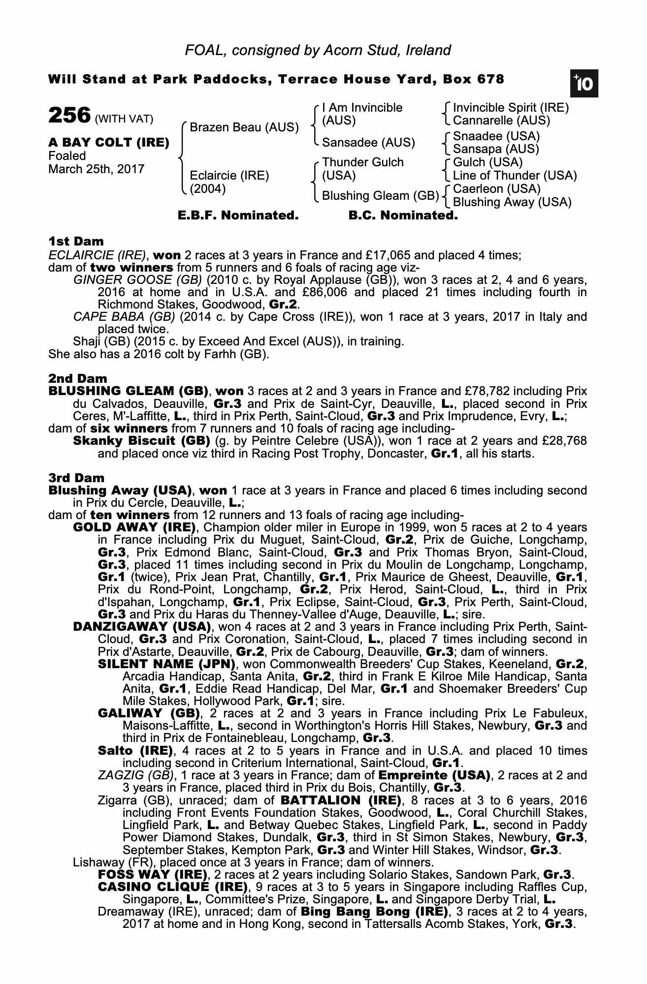 August Sale 2020 lot 106, Shadwell Stud=>David White 1,000 gns