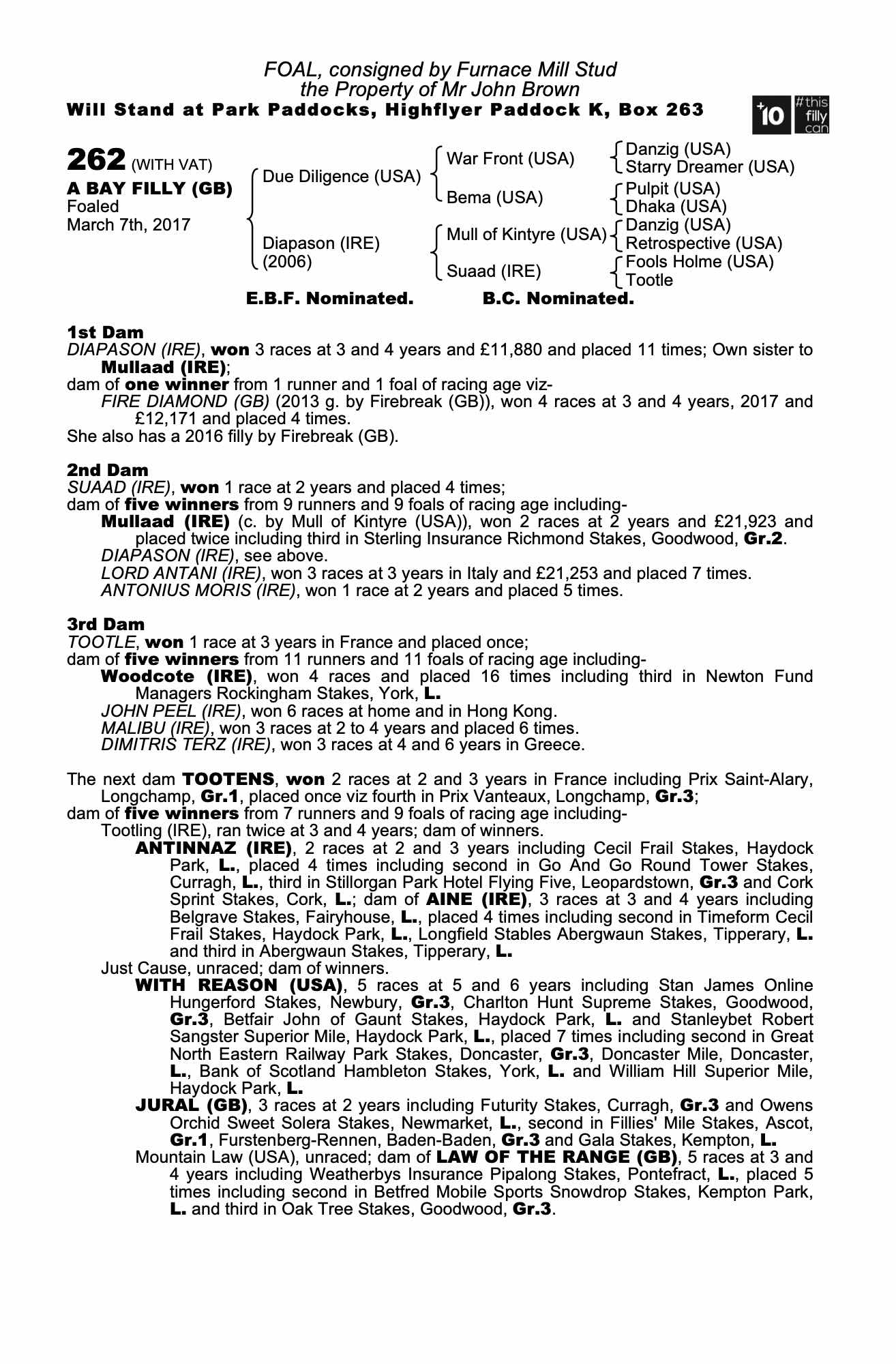 Ascot November Sale 2017 lot 10 F. by Firebreak (GB) 2016, Kinsale Stud=>Jane Degnan £1,200