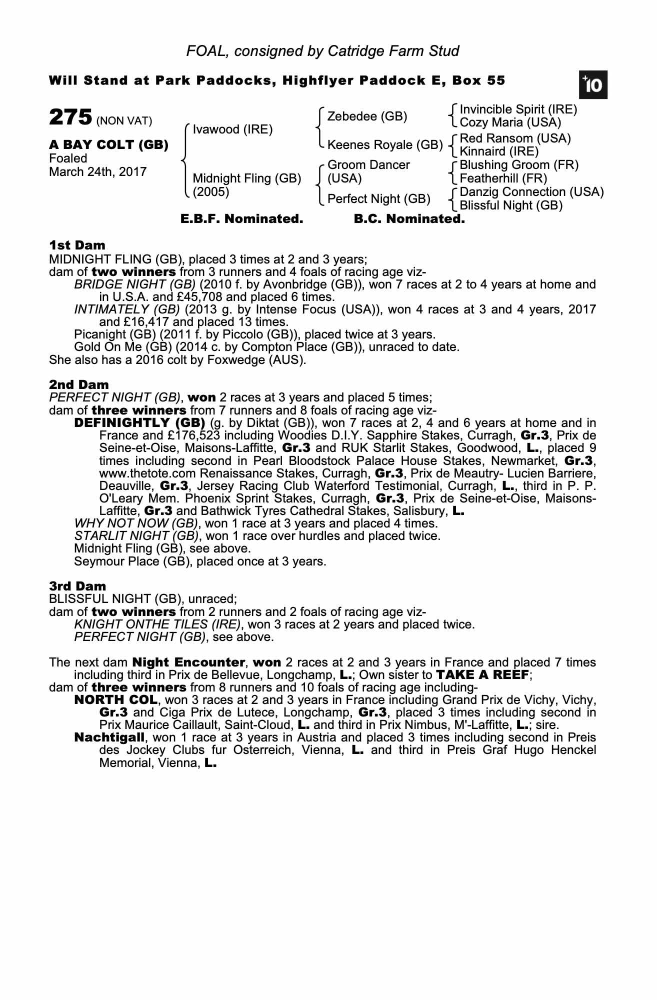 December Foal Sale 2019 lot 218 F. by Time Test (GB) 2019, Clarendon Farm=>Vendor 6,000 gns