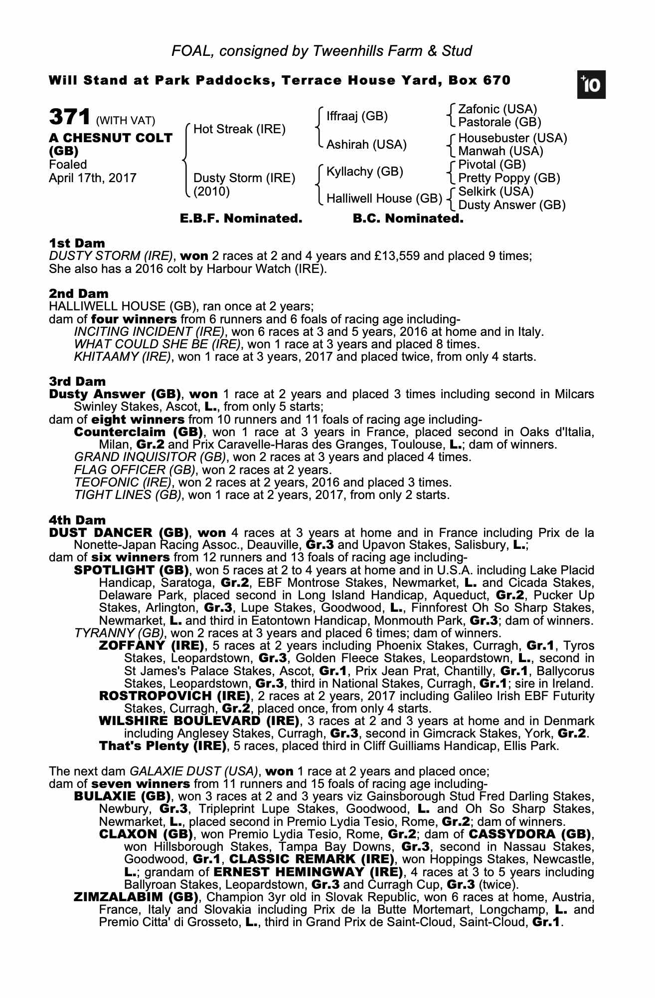 Consignor: Tweenhills Farm & Stud