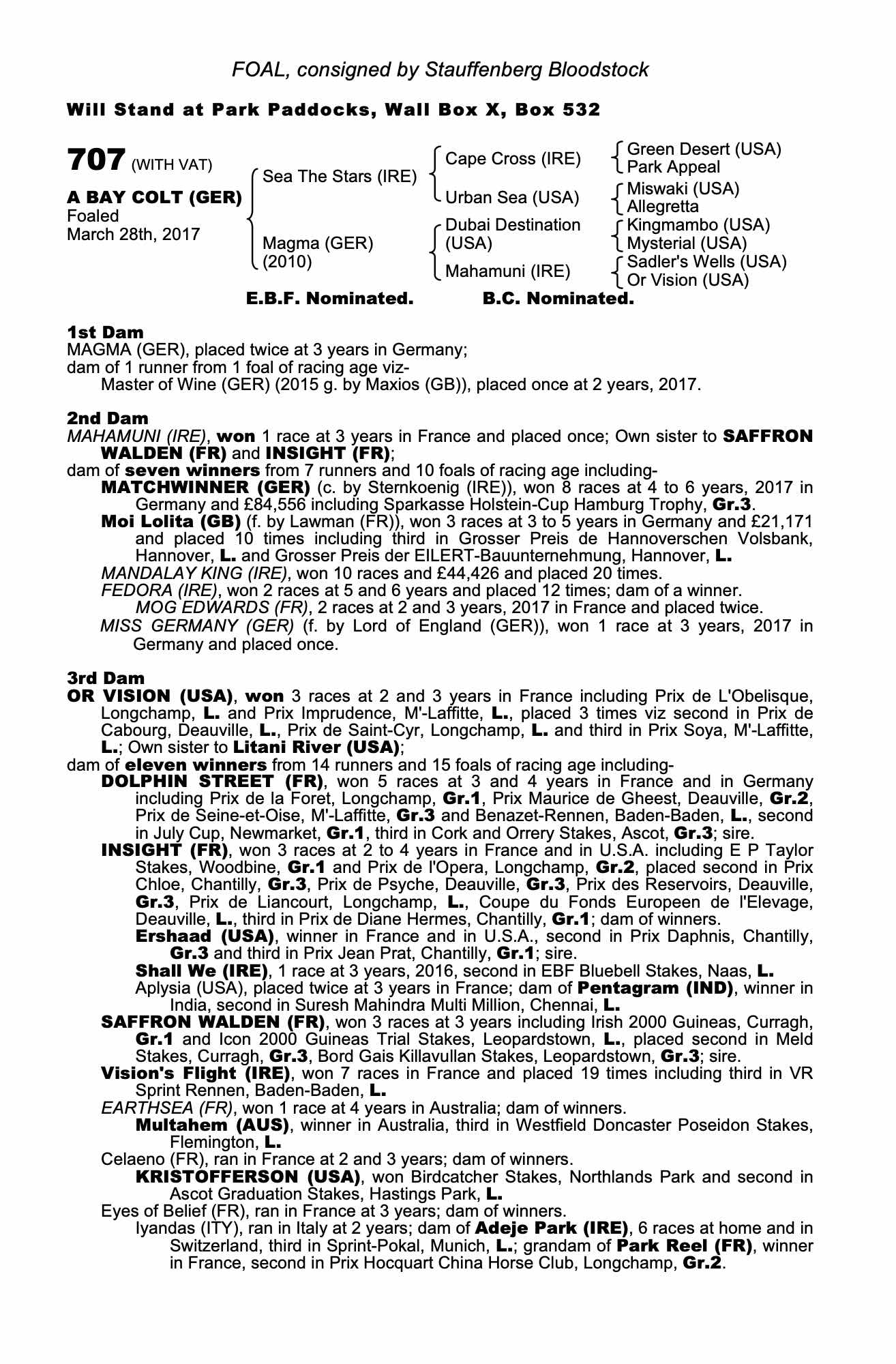 Lot 707 Sea The Stars (IRE) /Magma (GER) B.C. (GNY)