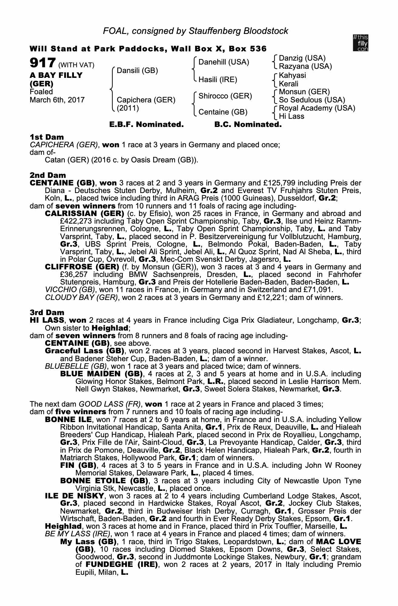 October Yearling Sale, Book 2 2019 lot 846 Coupe de Champagne (GER) (F. by Gleneagles (IRE)), Stauffenberg Bloodstock=>Johnston Racing 15,000 gns