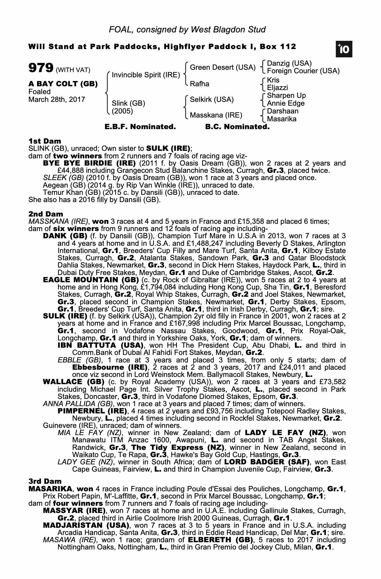 Consignor: West Blagdon Stud