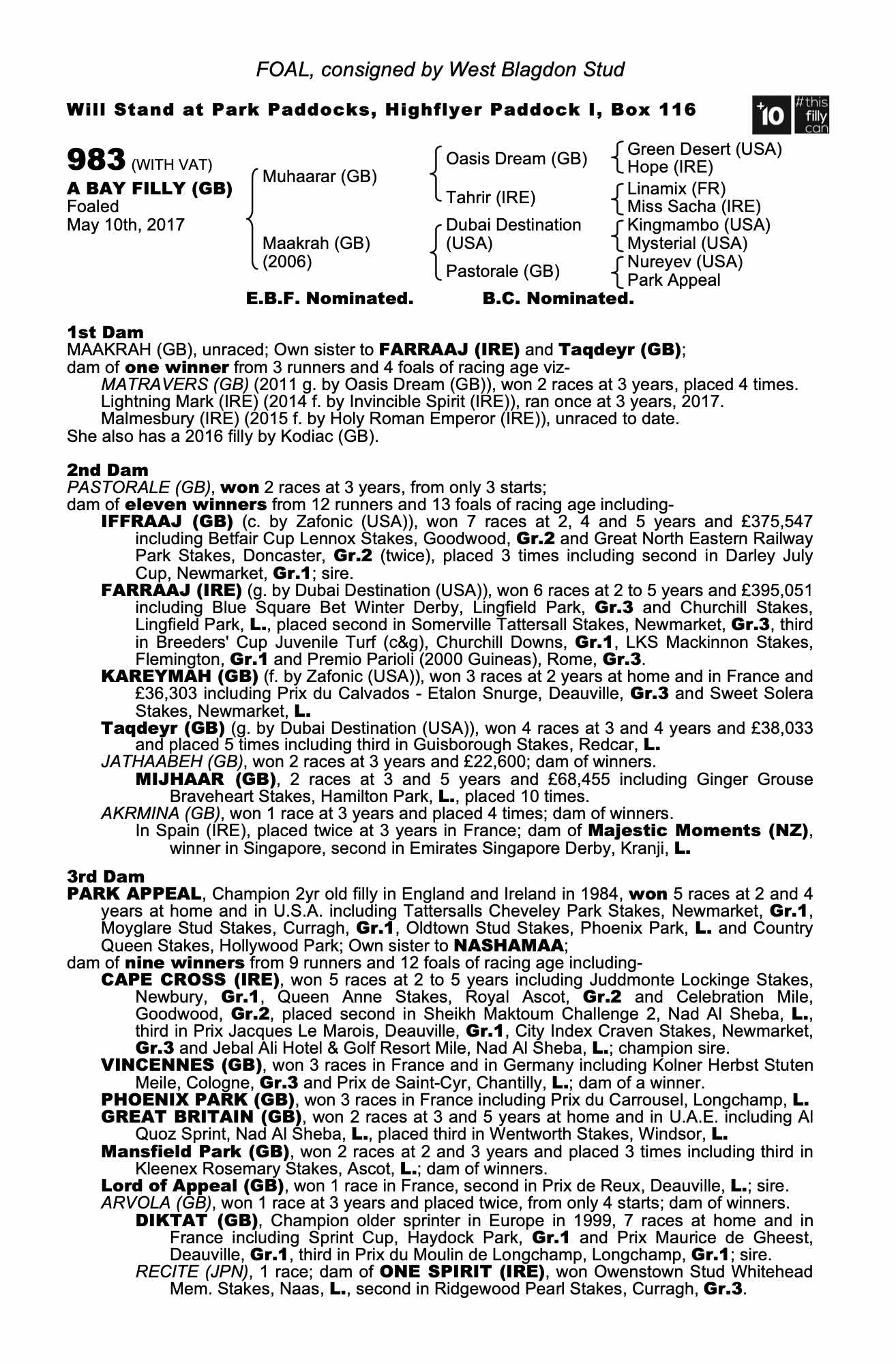 December Foal Sale 2014 lot 1095 F. by Invincible Spirit (IRE) 2014, West Blagdon Stud=>Norris/Huntingdon 130,000 gns