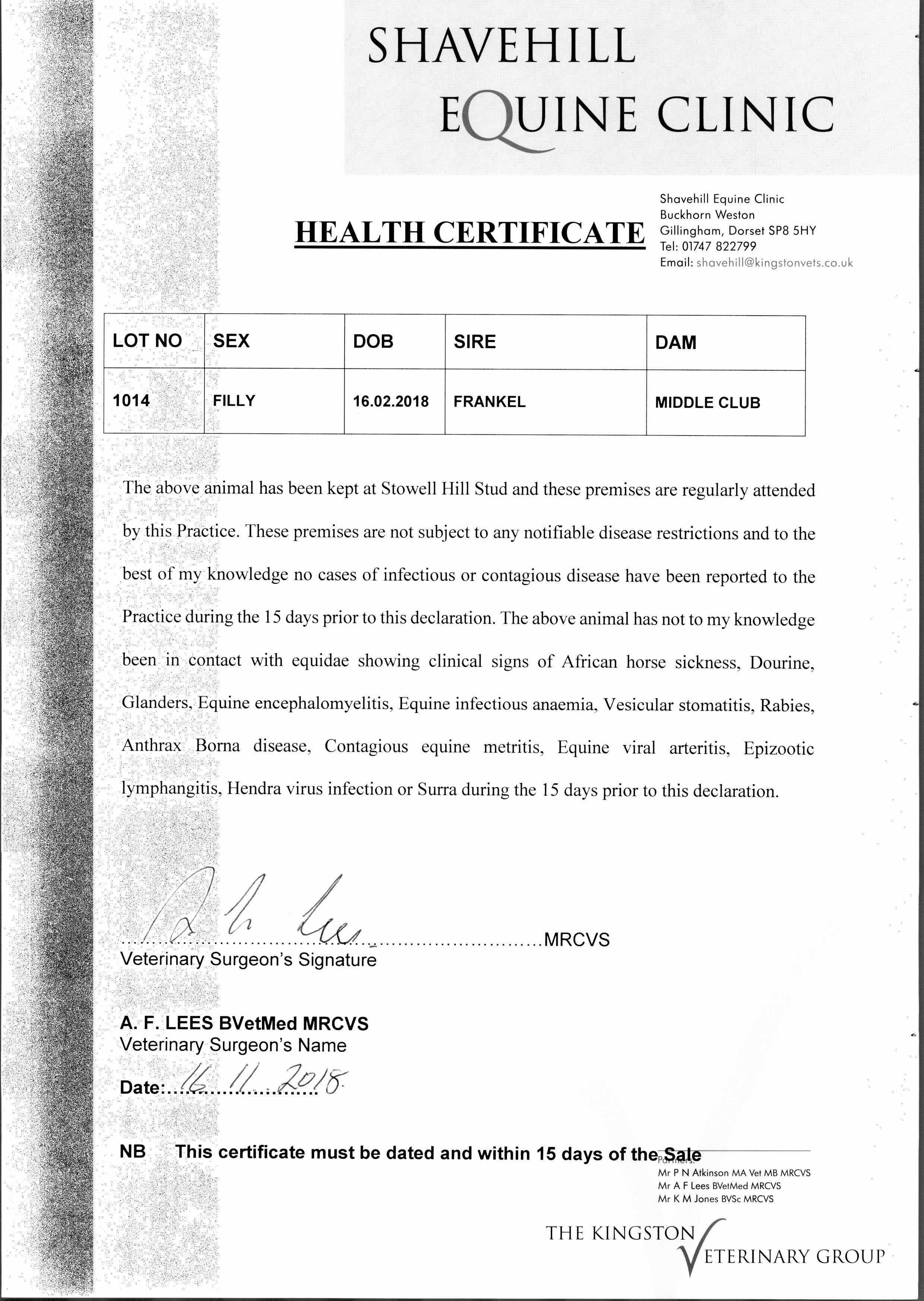 Consignor: Stowell Hill Stud