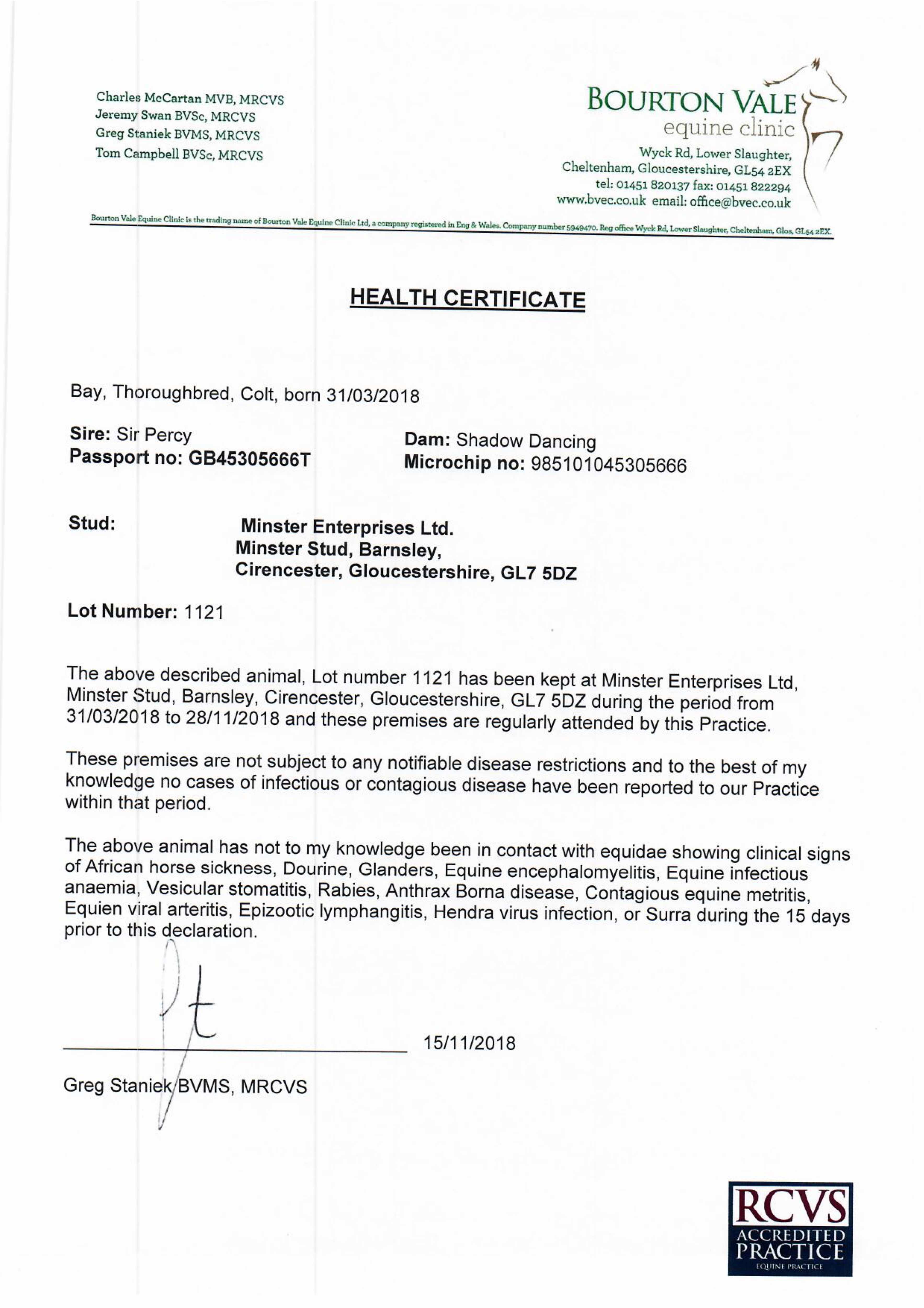 Consignor: Minster Stud