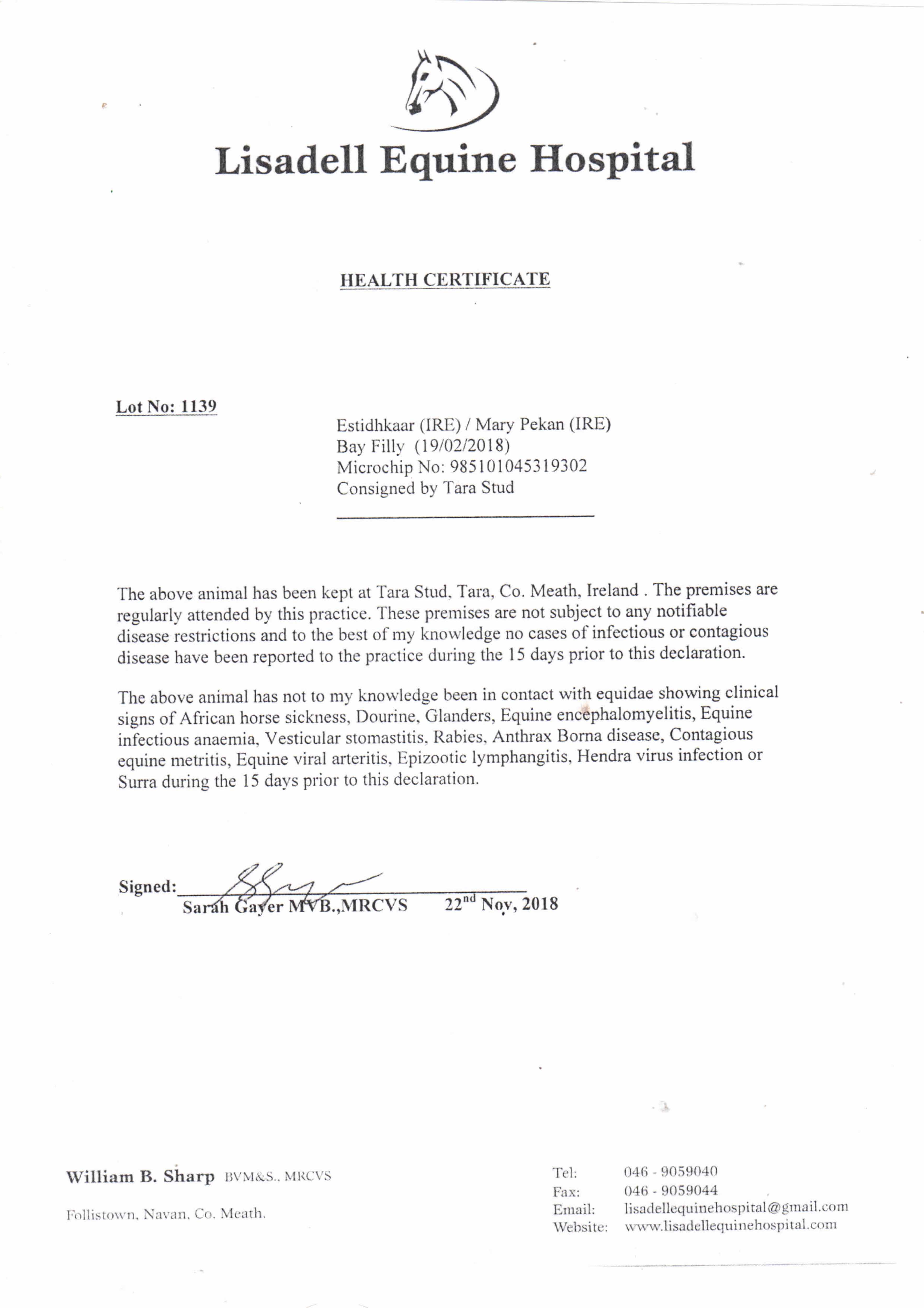 December Foal Sale 2019 lot 755 F. by Camacho (GB) 2019, Tara Stud, Ireland=>Jessica Welch 14,000 gns