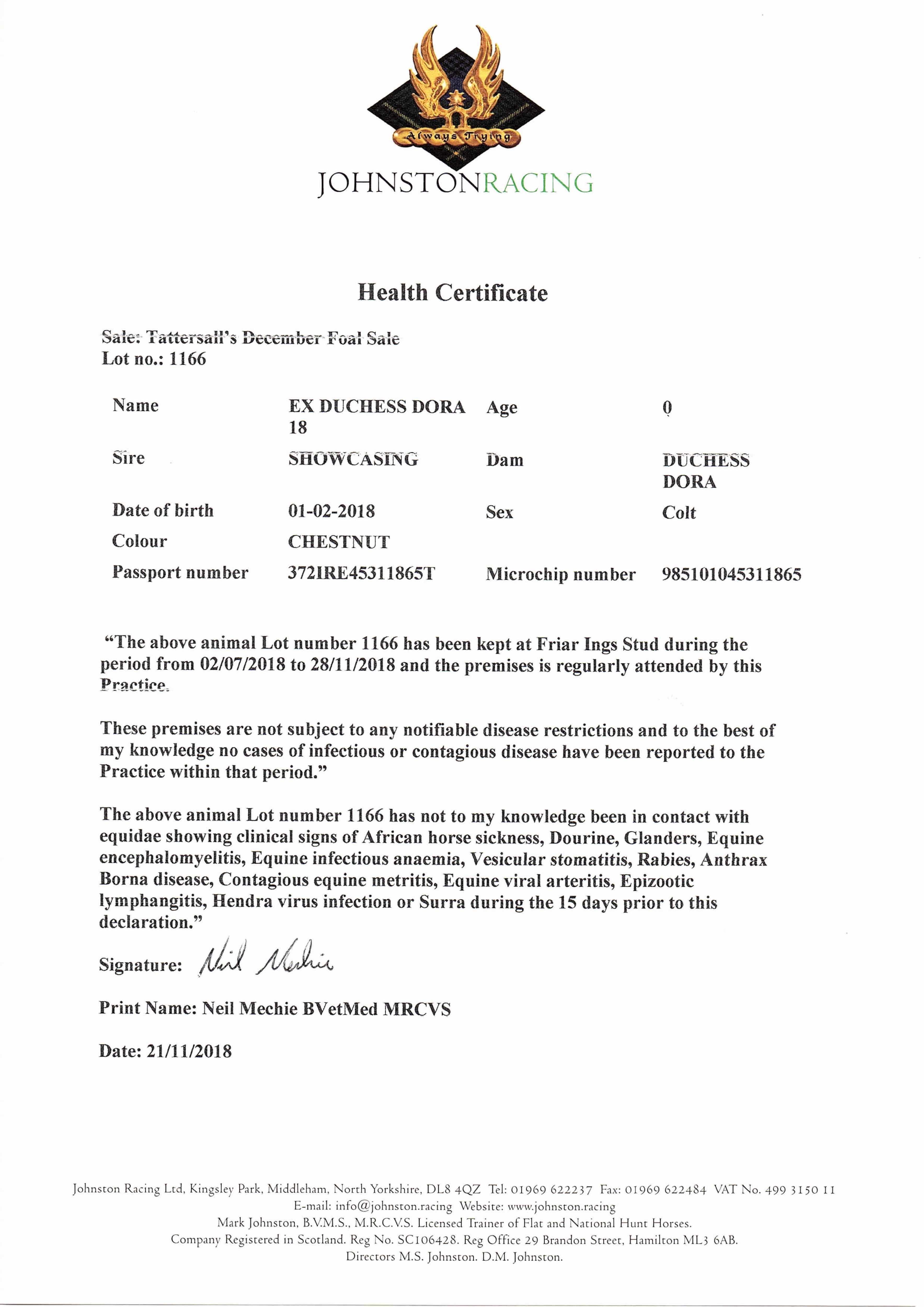 Consignor: Friar Ings Stud