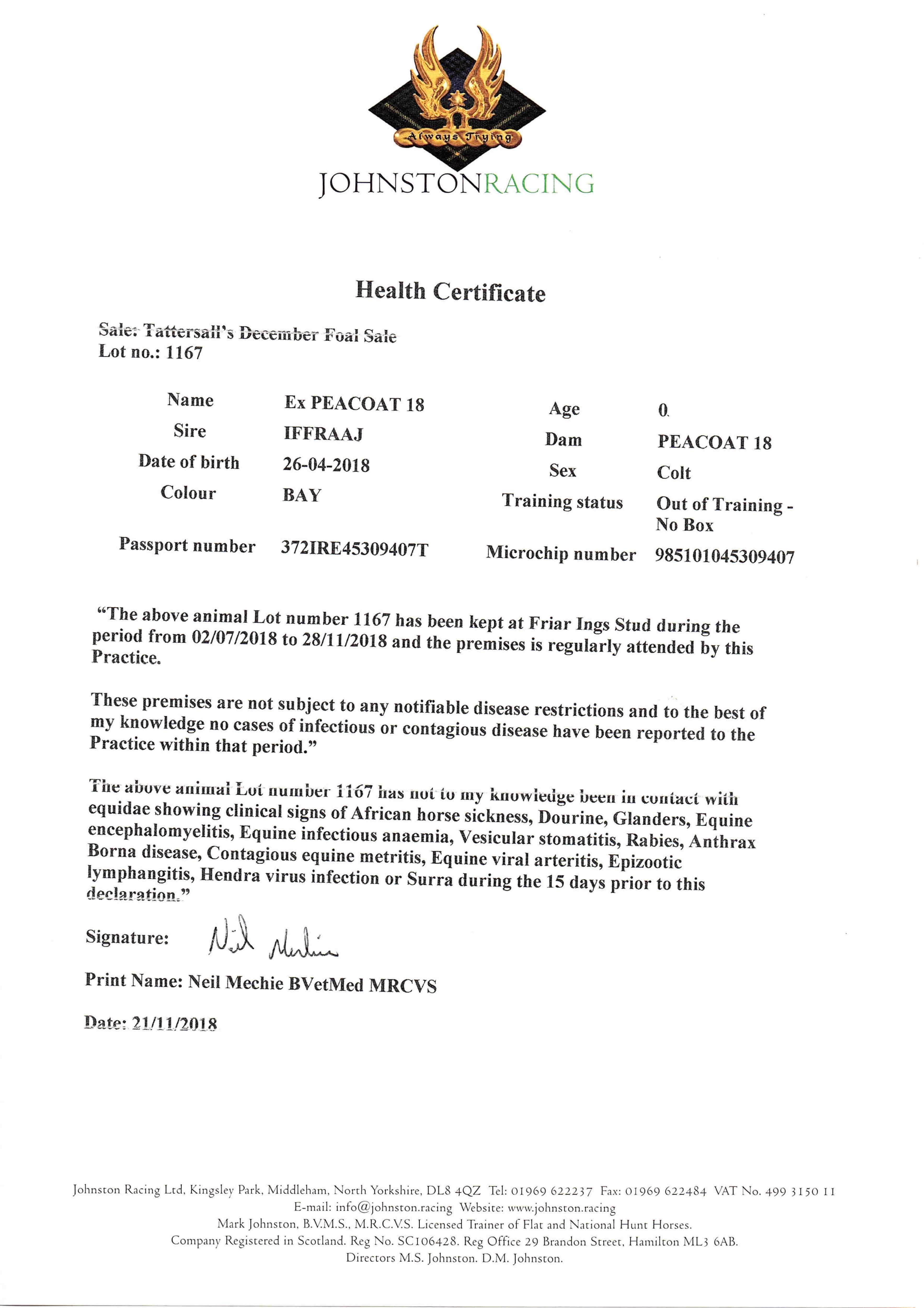 Consignor: Friar Ings Stud