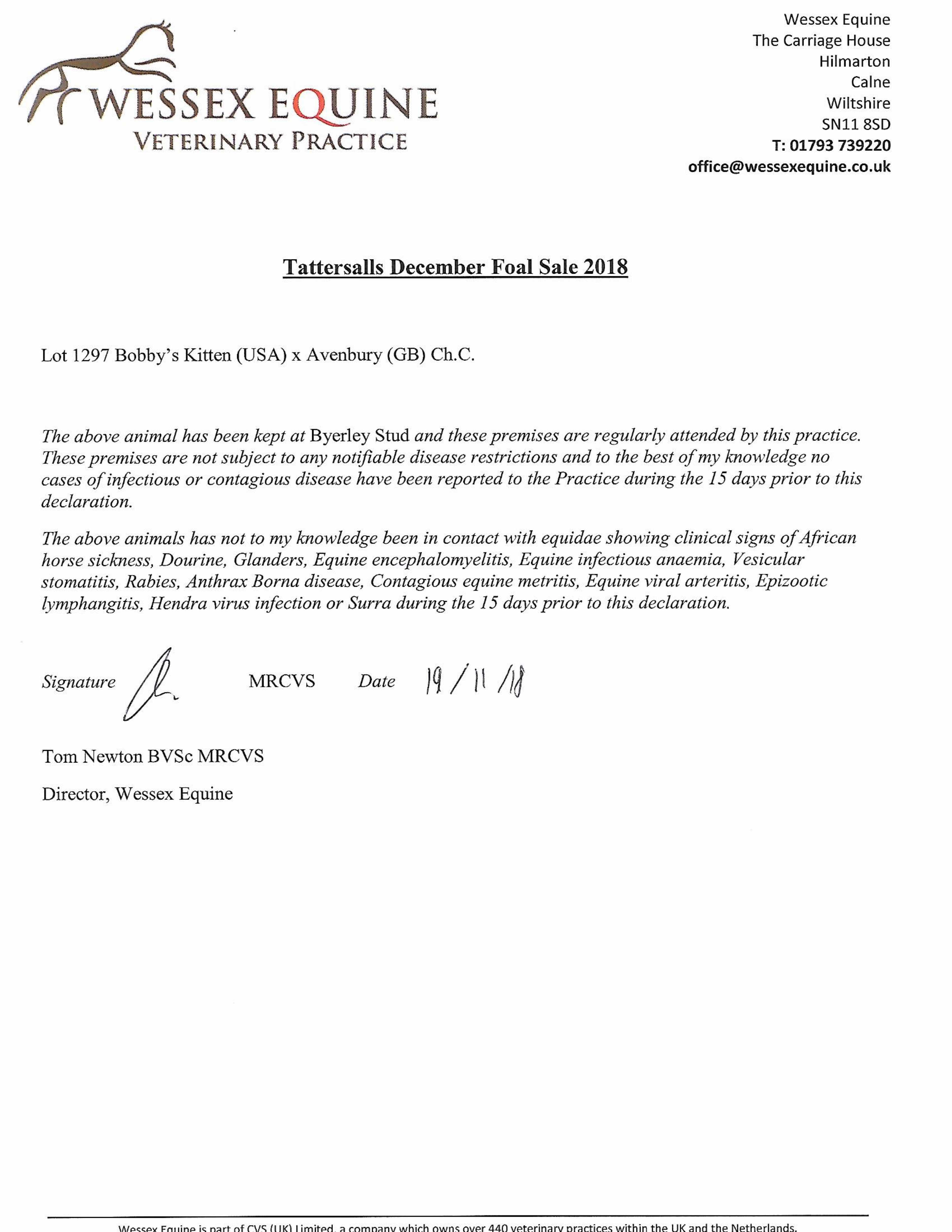 Ascot December Sale 2019 lot 120, Byerley Stud=>Mostafa MA El-Bakkoush £600