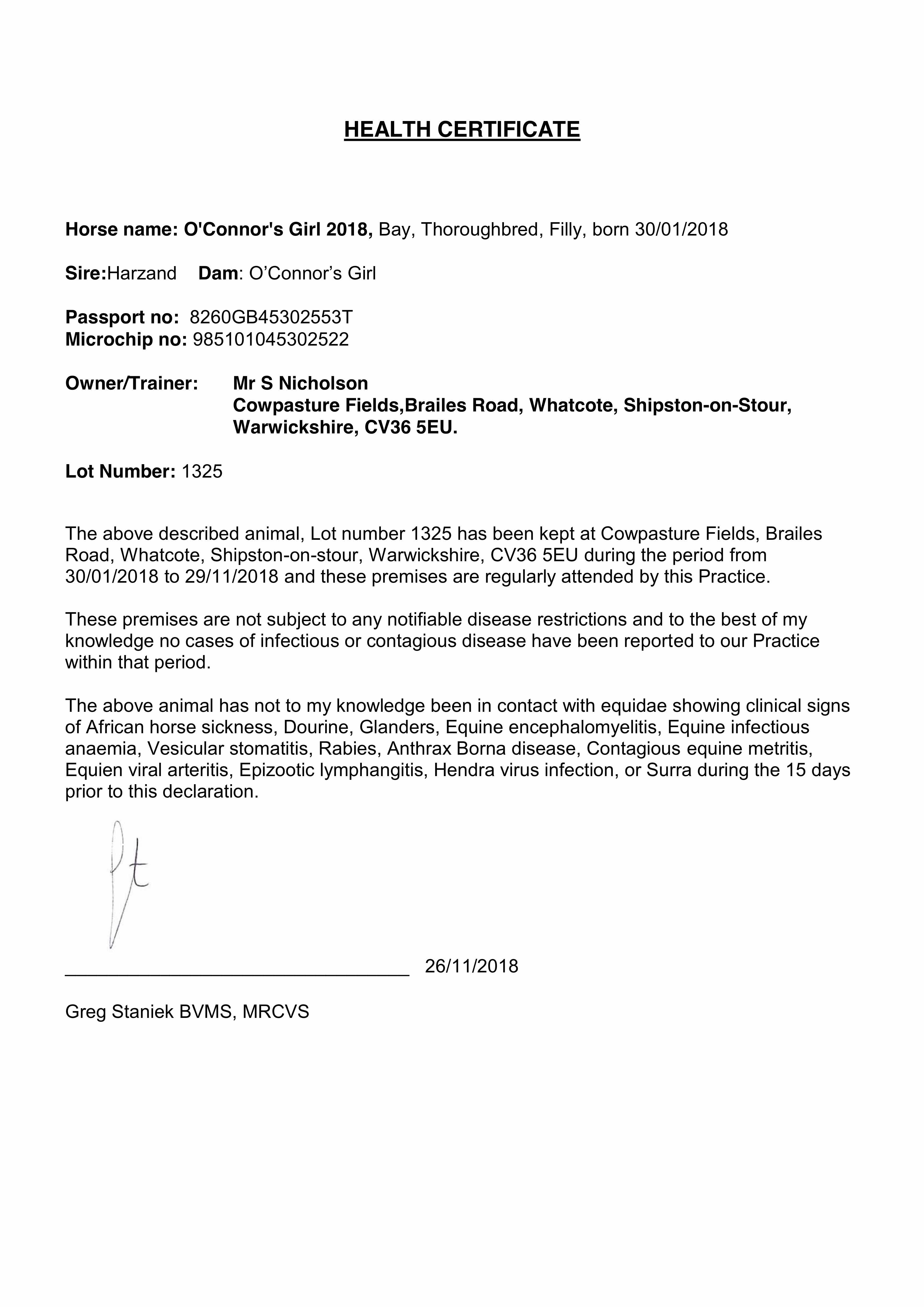 Consignor: Whatcote Farm Stud