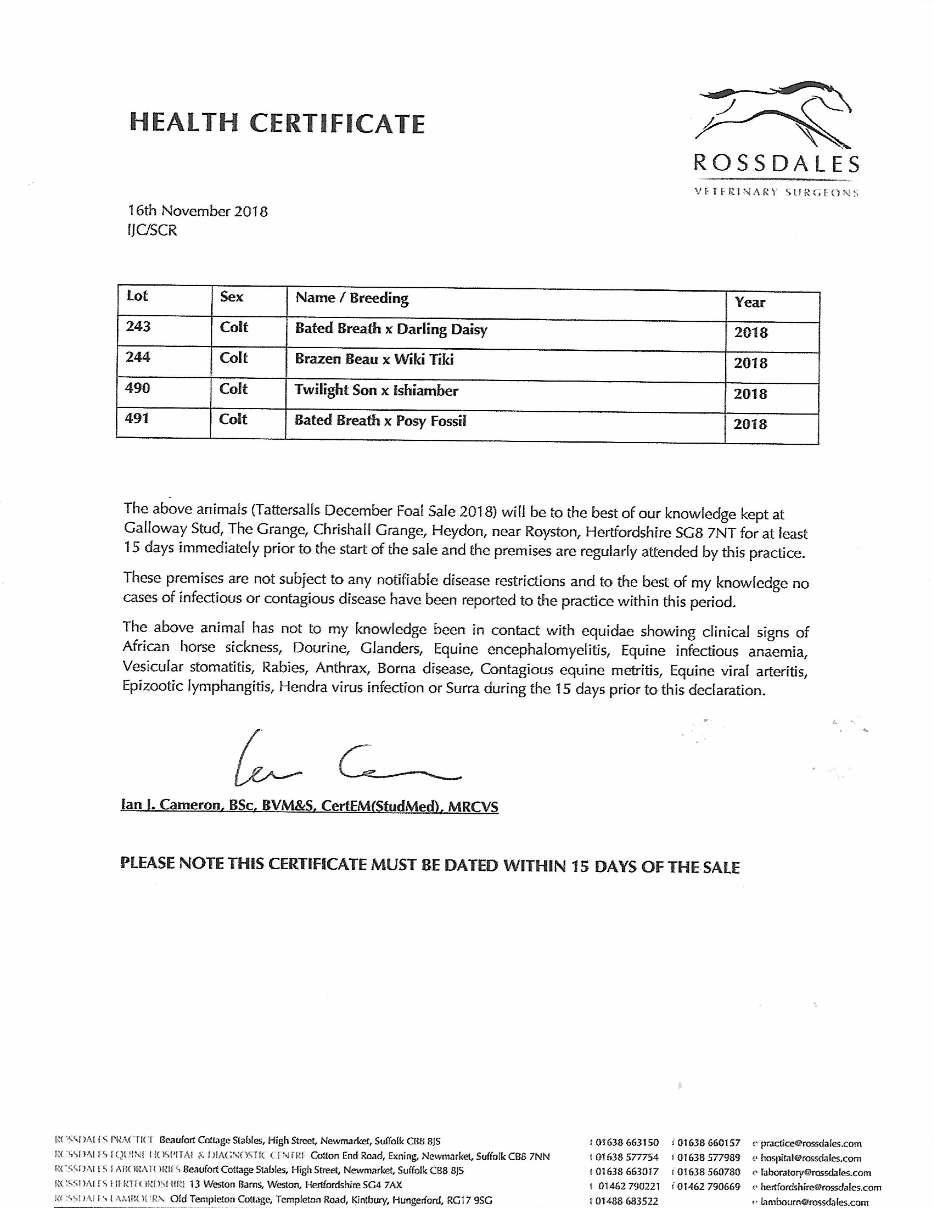 December Yearling Sale 2019 lot 39, Galloway Stud=>John & Jake Warren 9,000 gns