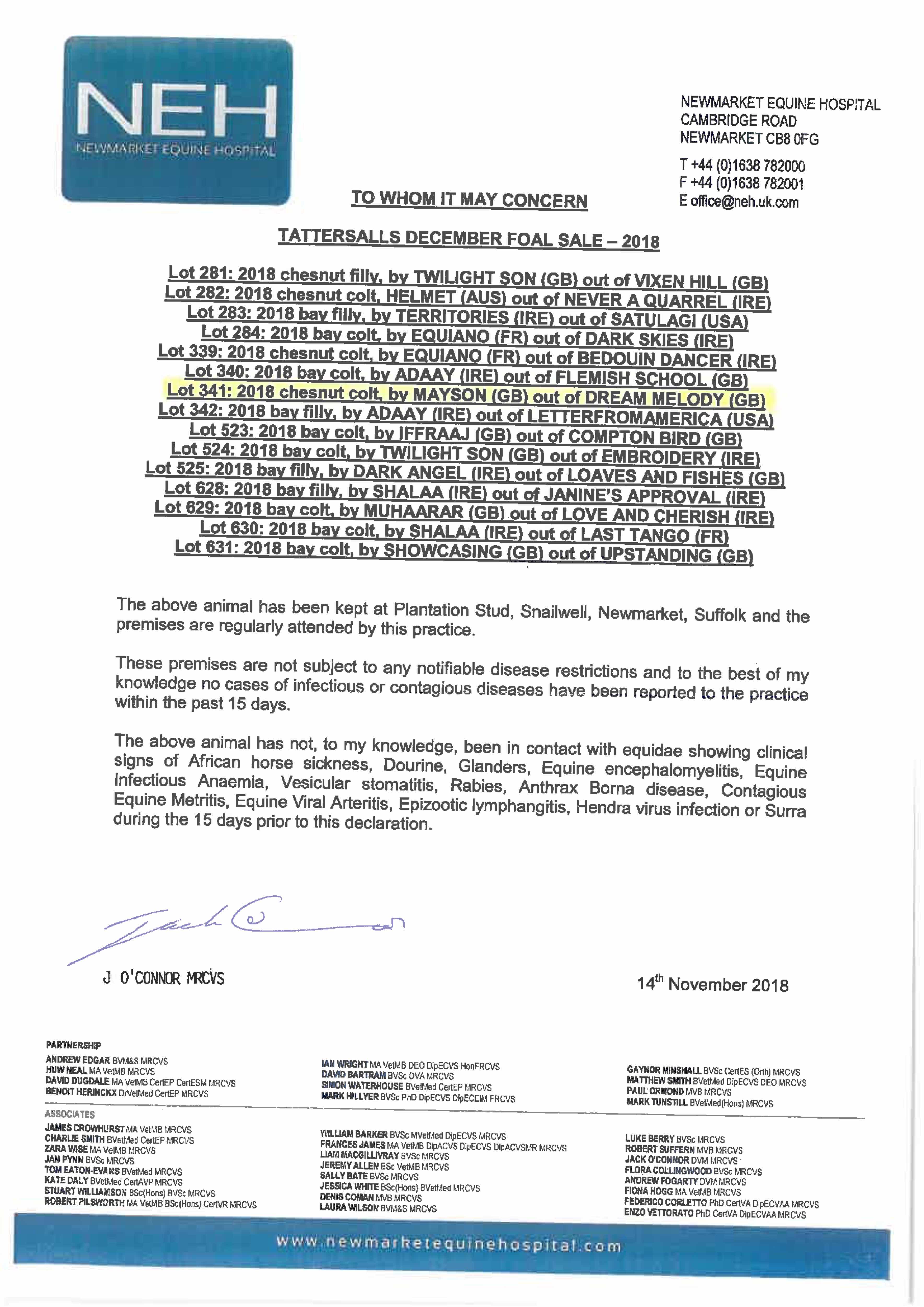 October Yearling Sale, Book 2 2018 lot 1050 C. by Showcasing (GB) 2017, Yeomanstown Stud, Ireland=>Shadwell Estate Company 140,000 gns