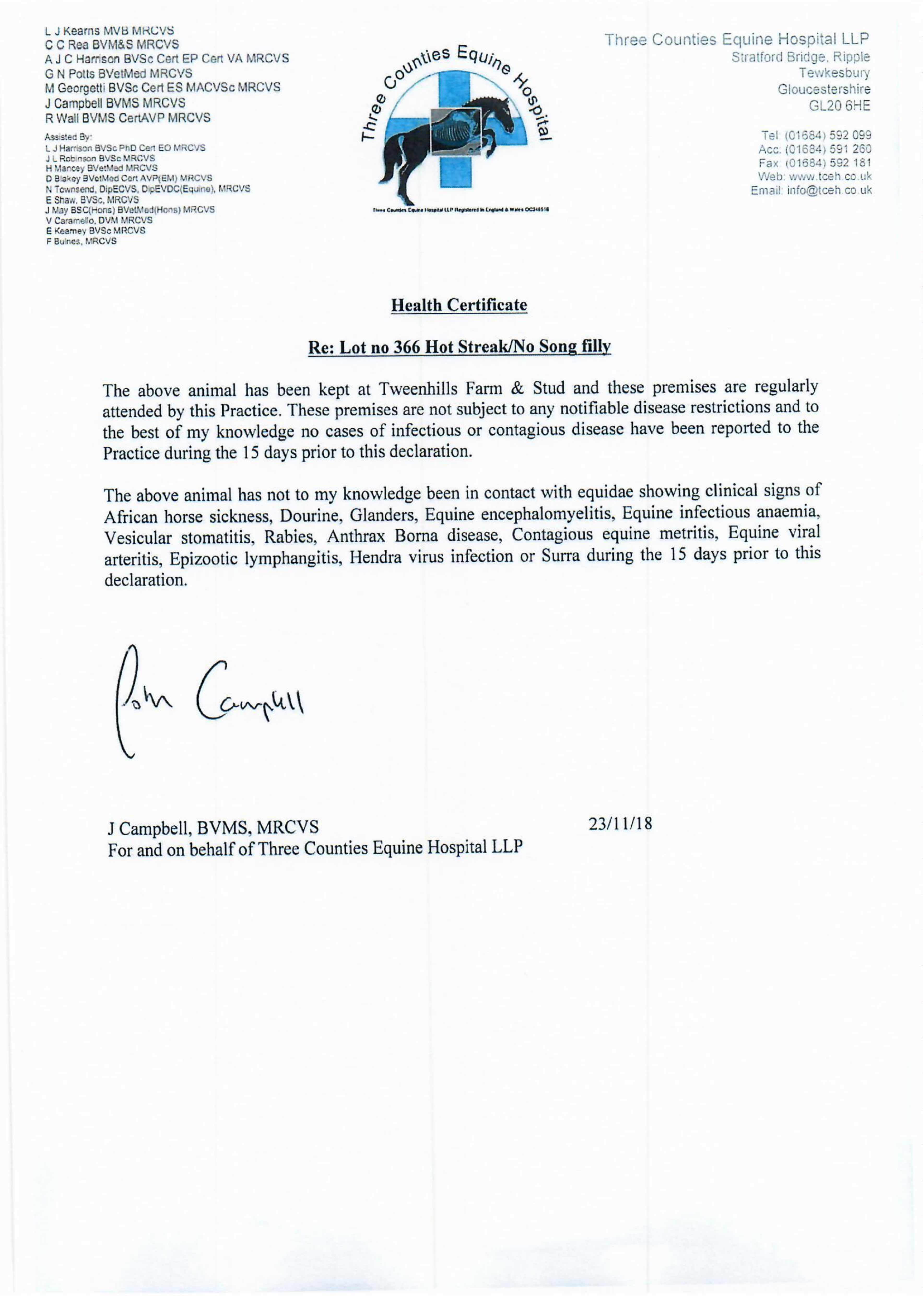 Consignor: Tweenhills Farm & Stud