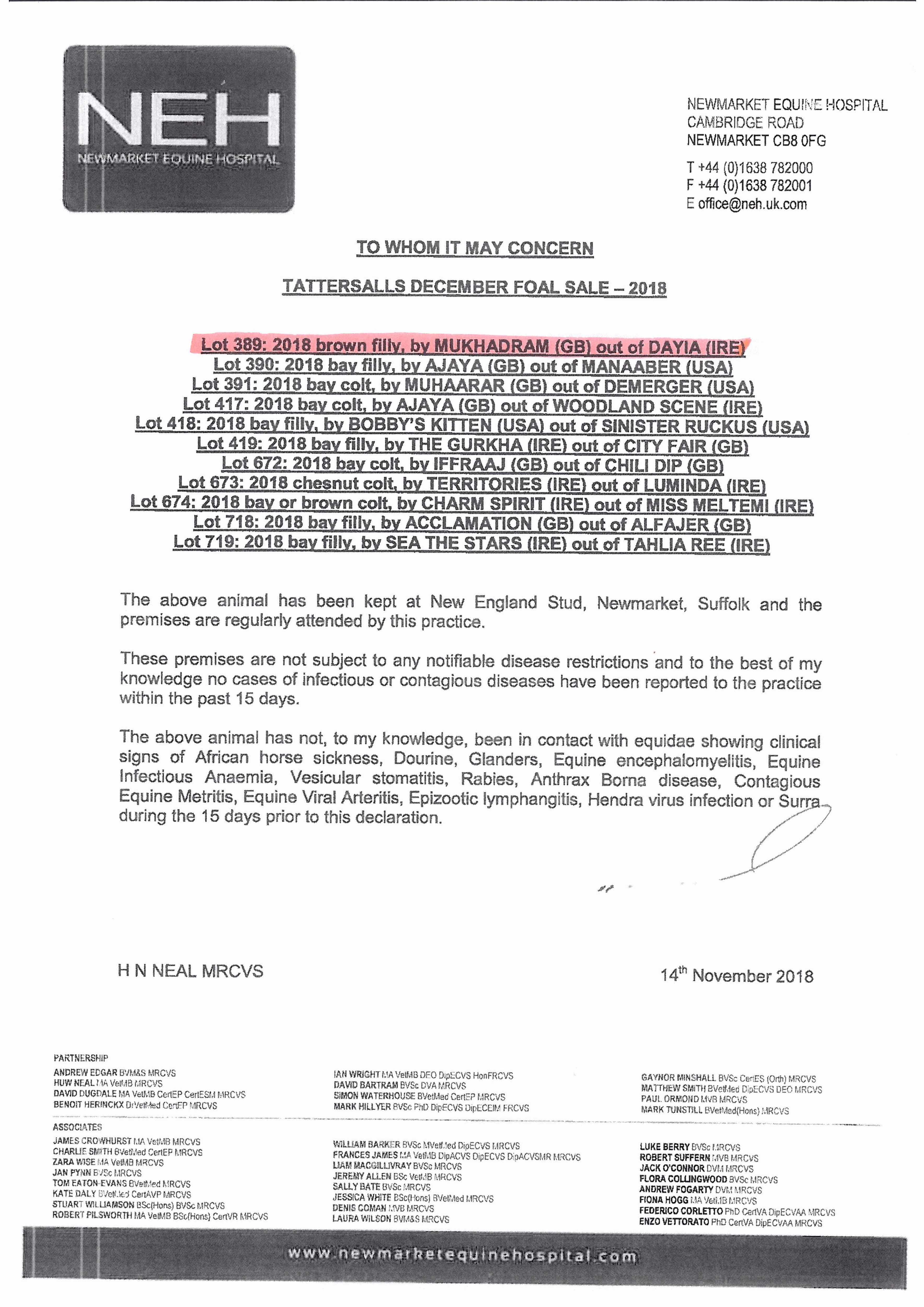 December Foal Sale 2015 lot 1448 F. by Medicean (GB) 2015, Throckmorton Court Stud=>Wallhouse Slu 7,500 gns