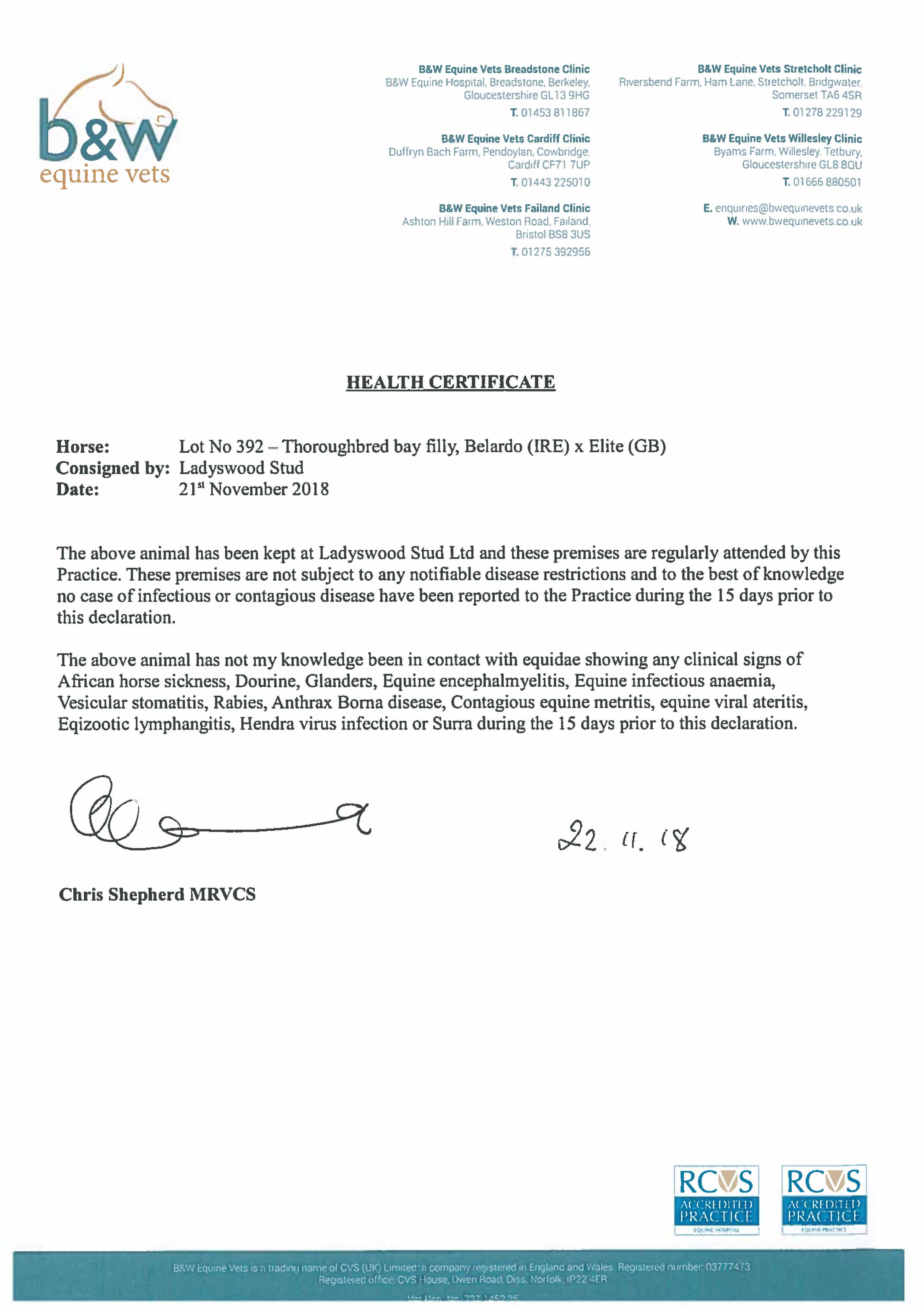Consignor: Ladyswood Stud