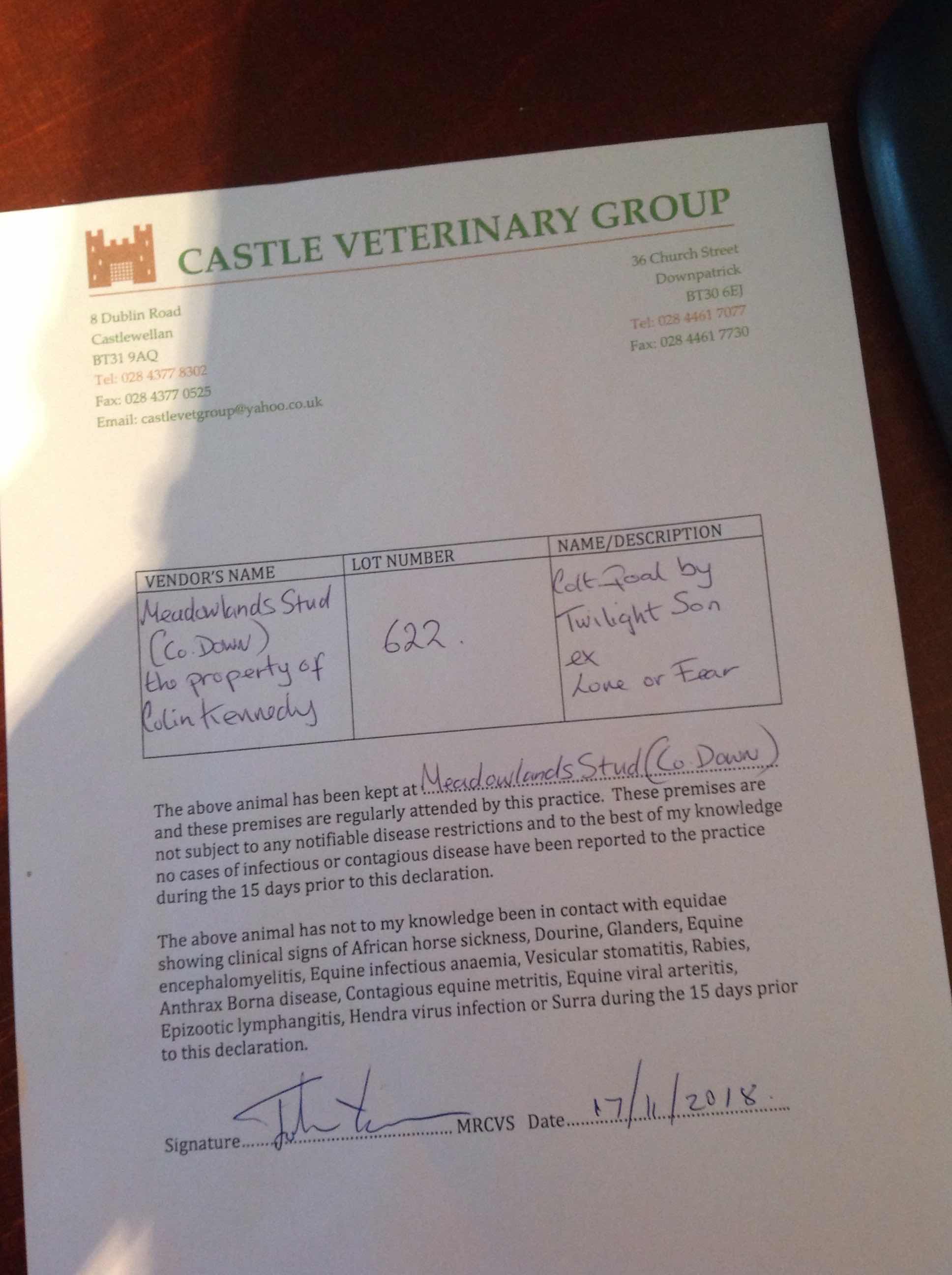 December Foal Sale 2019 lot 640 F. by The Gurkha (IRE) 2019, Meadowlands Stud (Co. Down)=>Danesrath Stud 3,000 gns