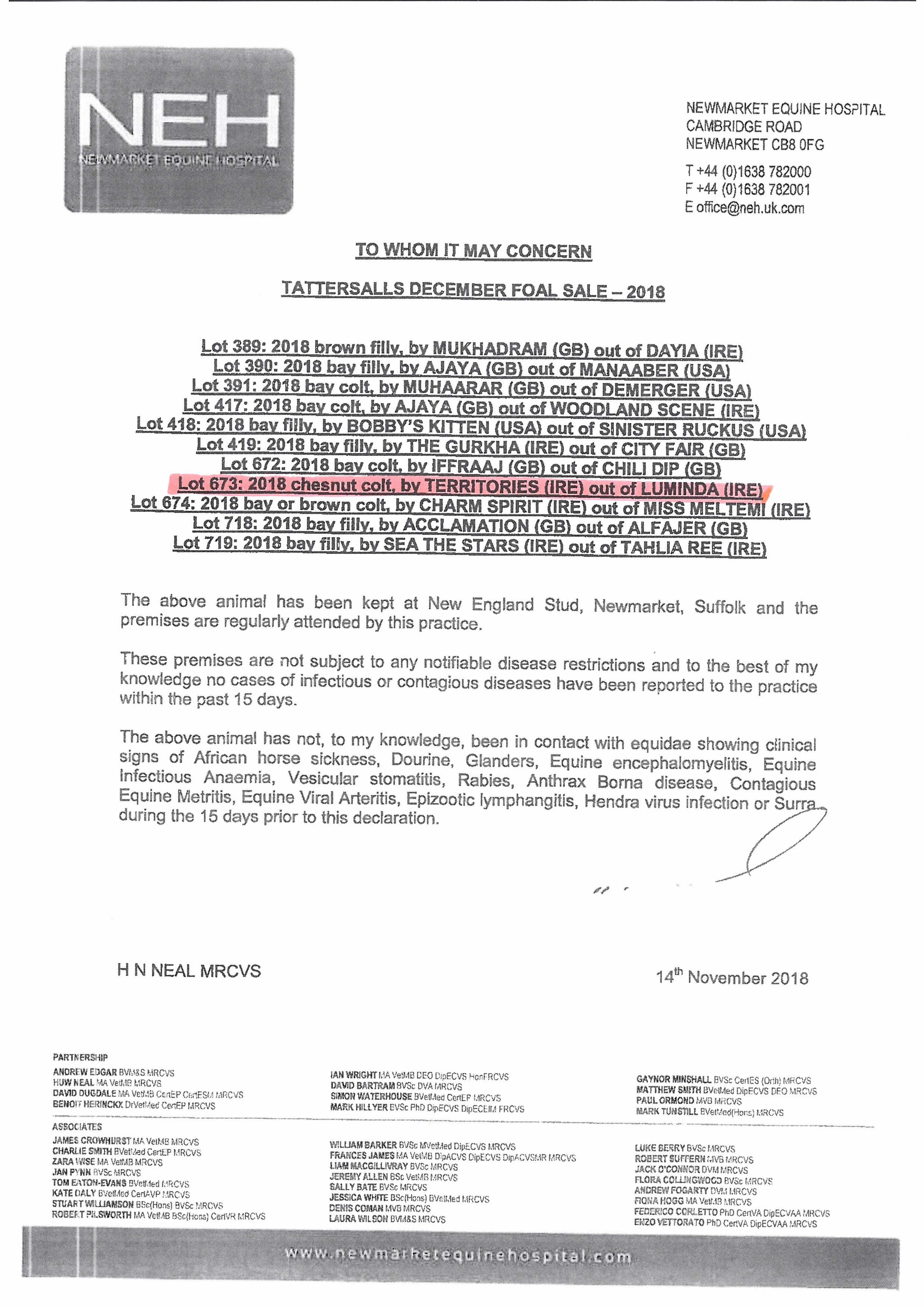 December Foal Sale 2007 lot 1465 F. by Medicean (GB) 2007, New England Stud=>Pier House Stud 64,000 gns