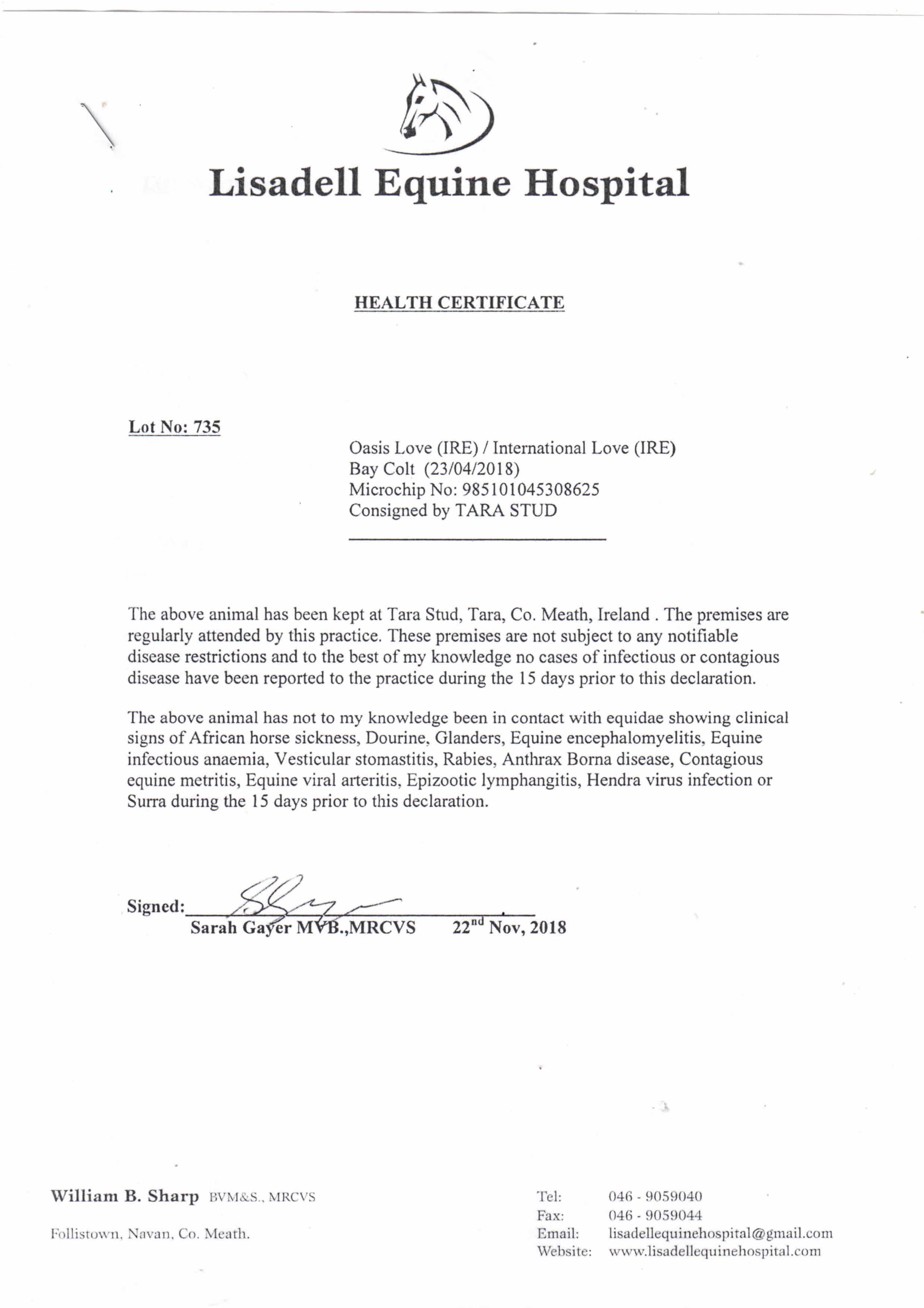 Consignor: Tara Stud, Ireland
