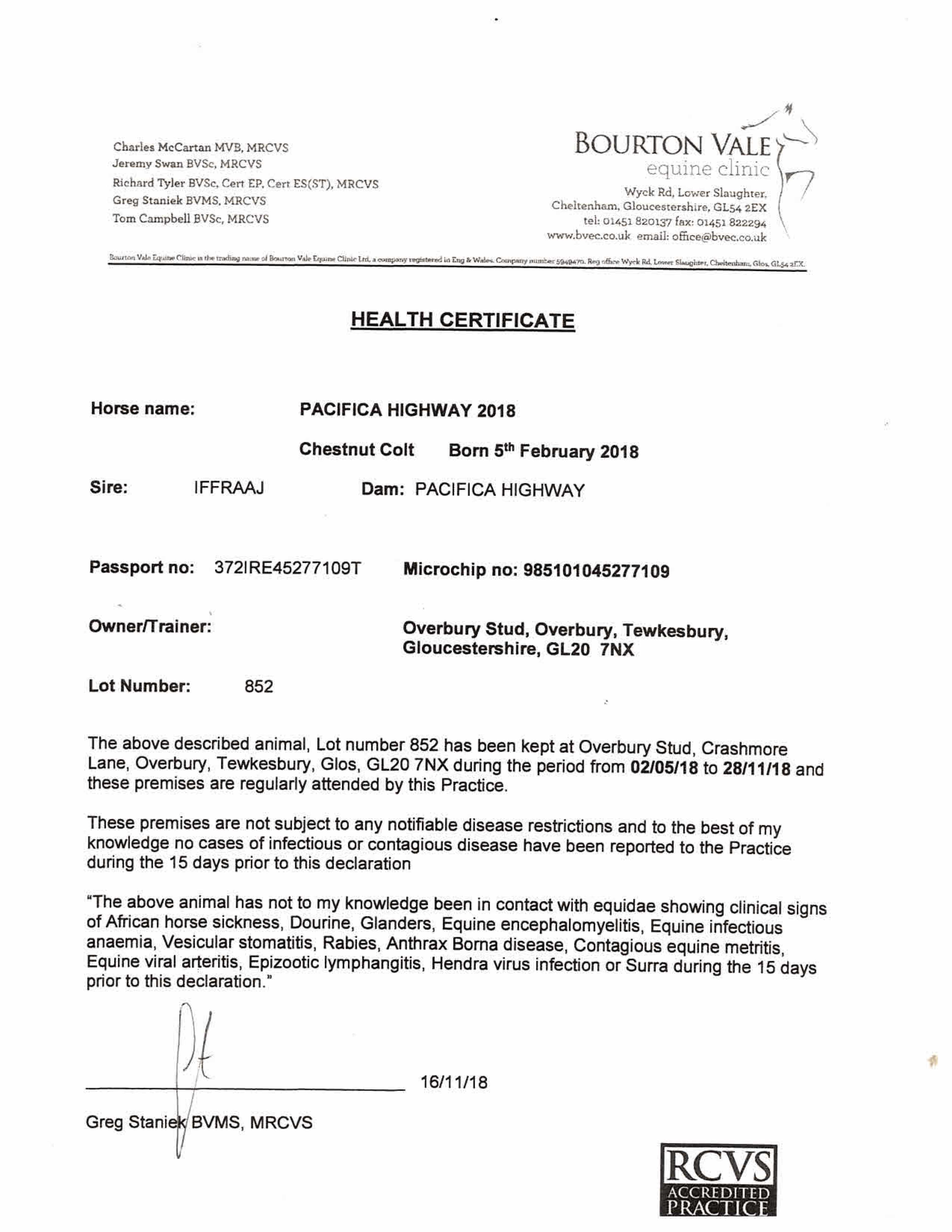 Iffraaj (GB) / Pacifica Highway (USA) Ch.C. (IRE)