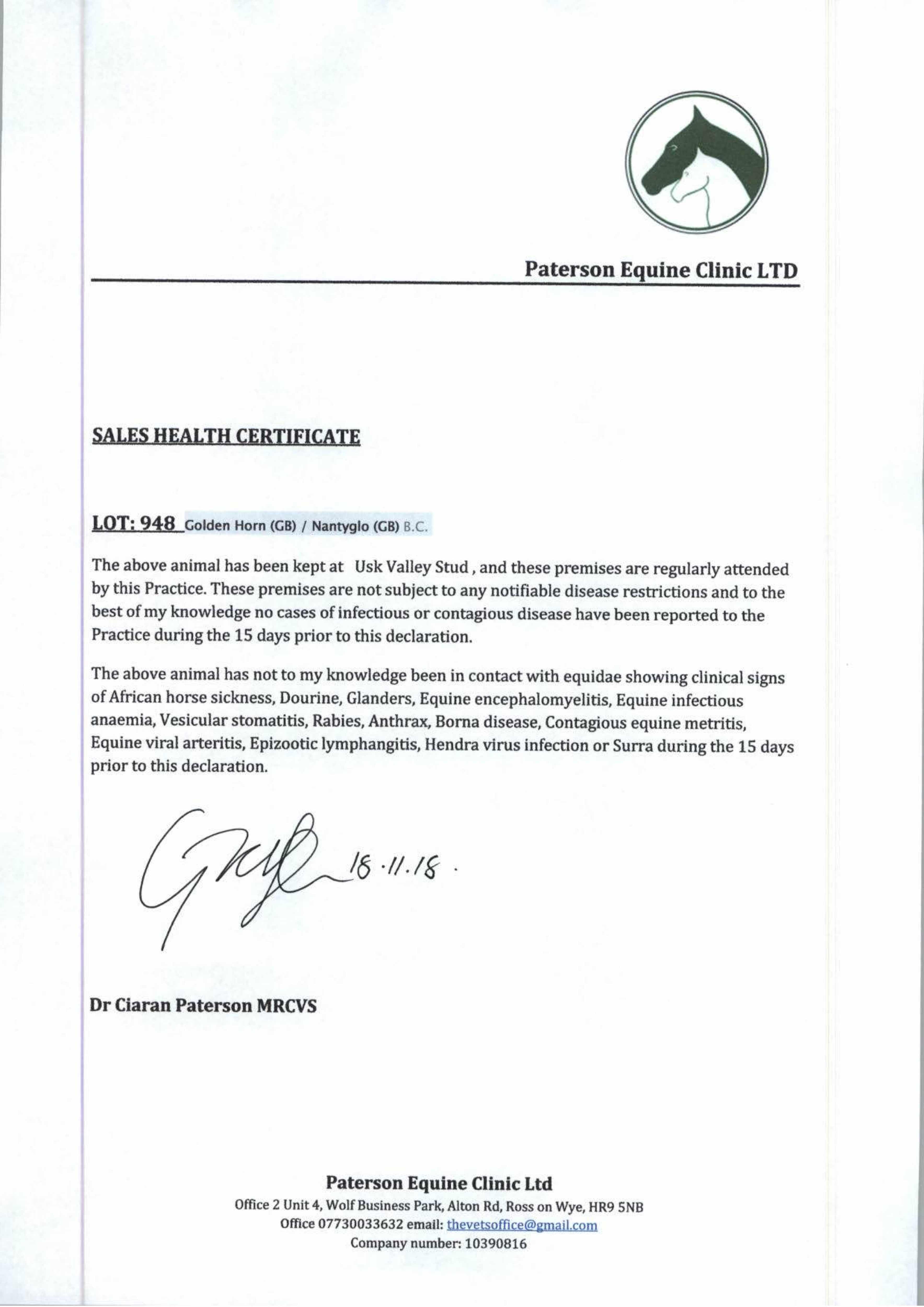 Consignor: Usk Valley Stud