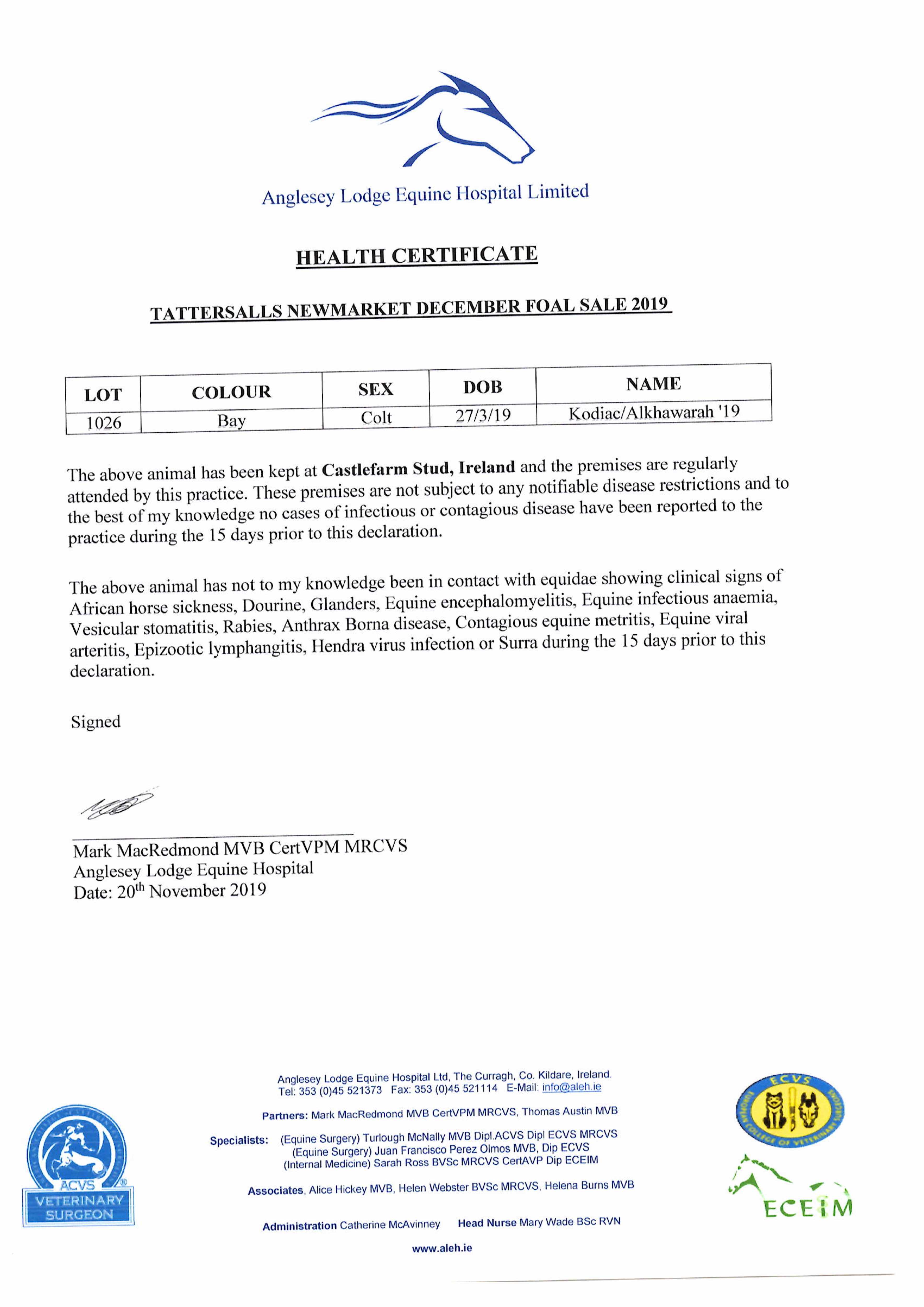 Consignor: Castlefarm Stud, Ireland (Agent)