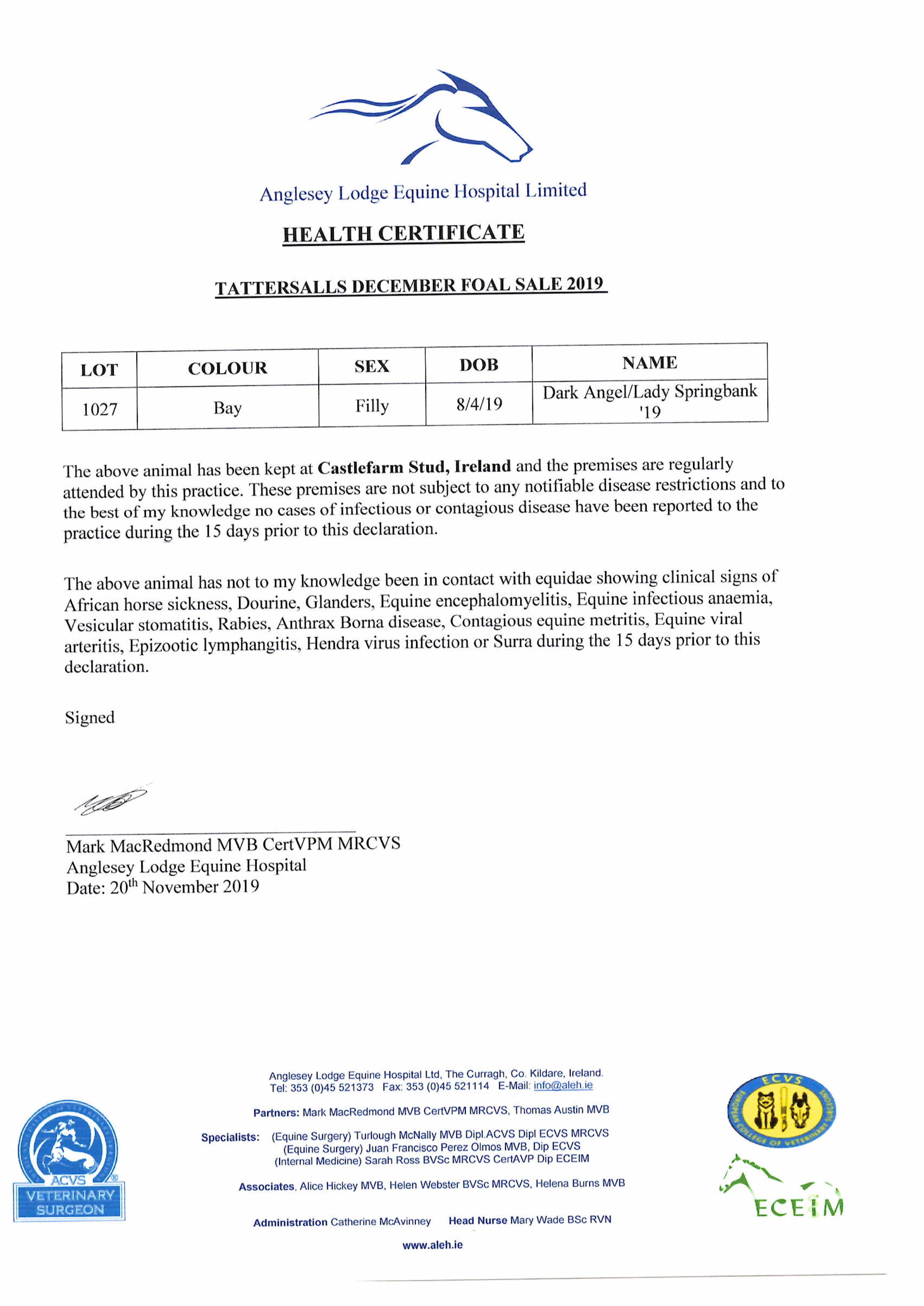 Consignor: Castlefarm Stud, Ireland (Agent)