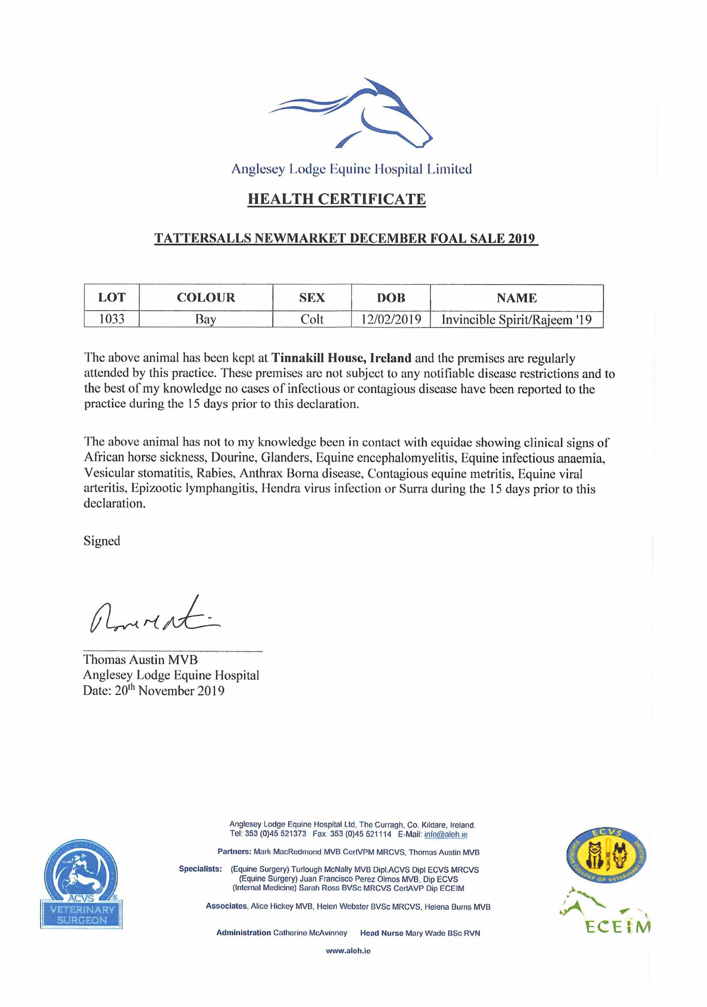 Consignor: Tinnakill House, Ireland