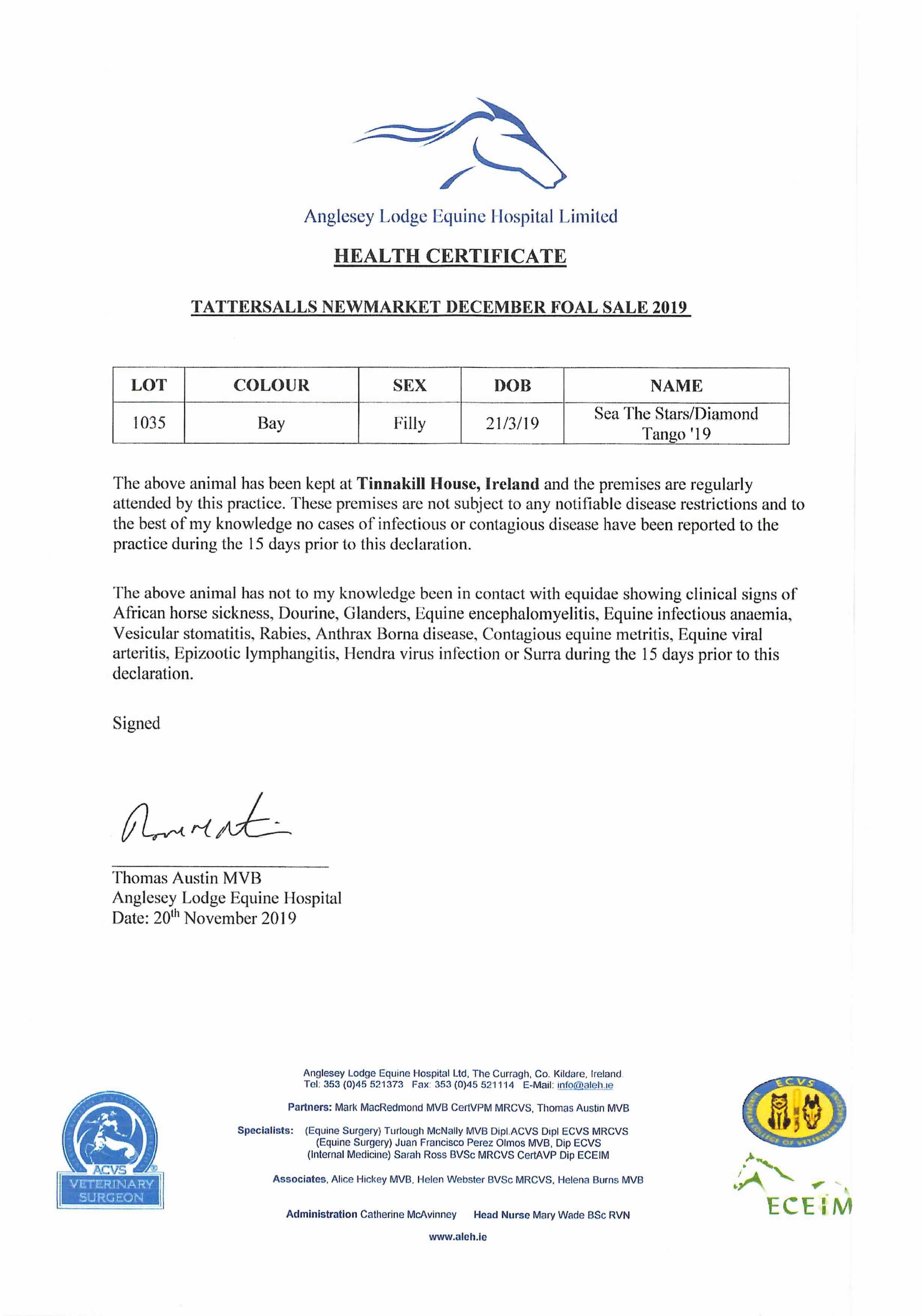 December Foal Sale 2020 lot 1001 F. by Australia (GB) 2020, Tinnakill House, Ireland=>Justin Casse Agent 140,000 gns