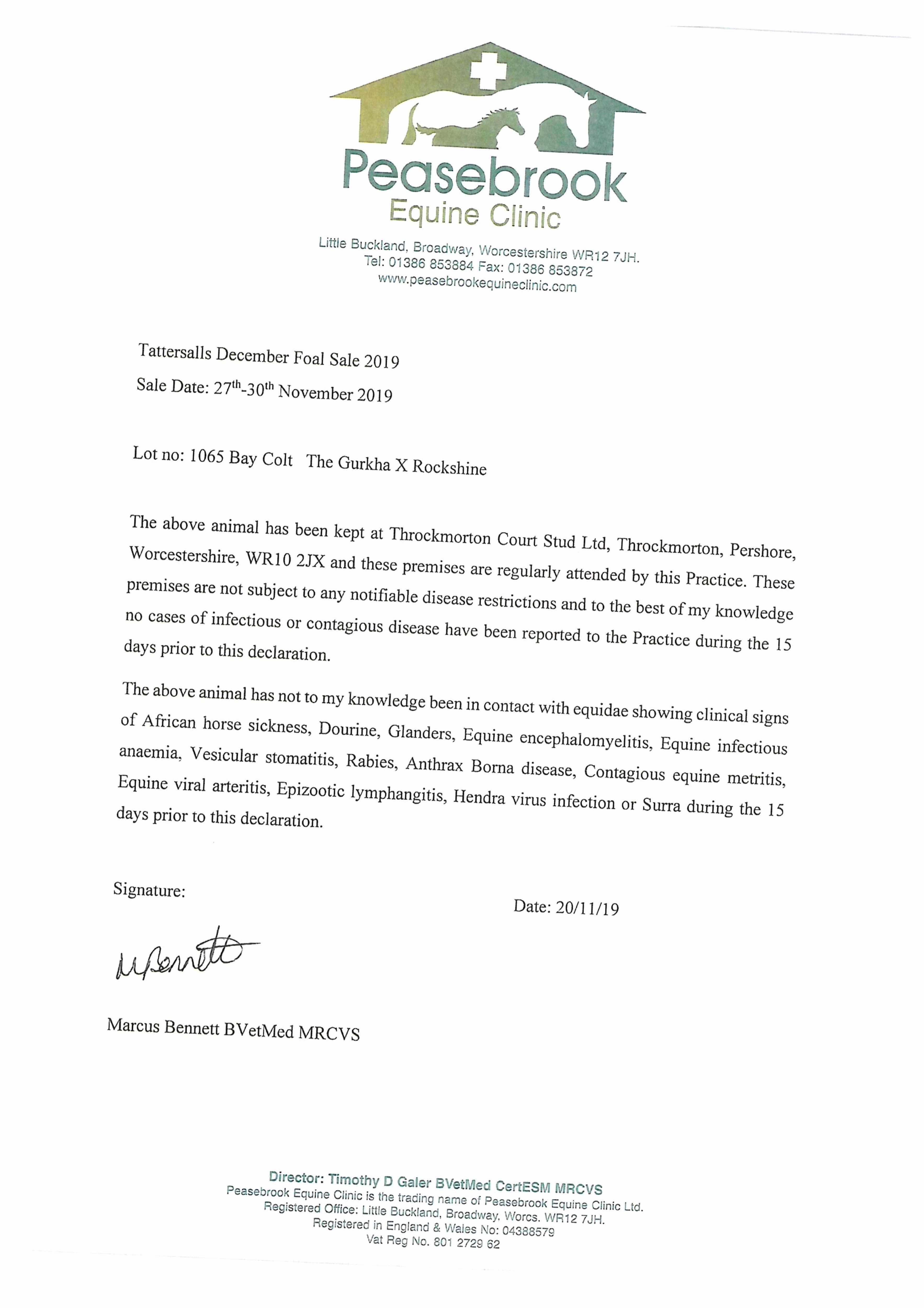 December Foal Sale 2020 lot 1027 C. by Gleneagles (IRE) 2020, Throckmorton Court Stud=>Lot Not Sold 19,000 gns