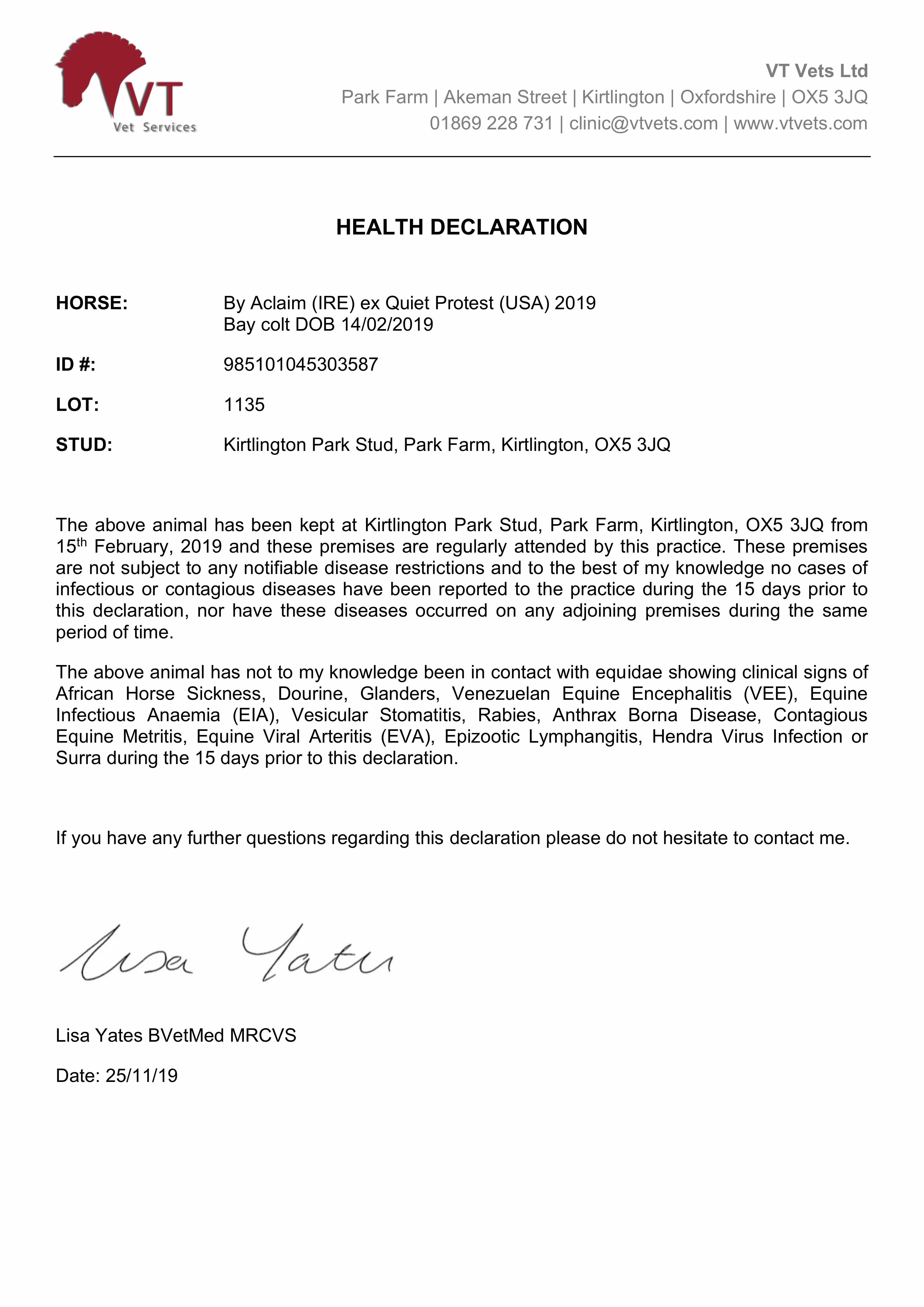 Consignor: Kirtlington Park Stud