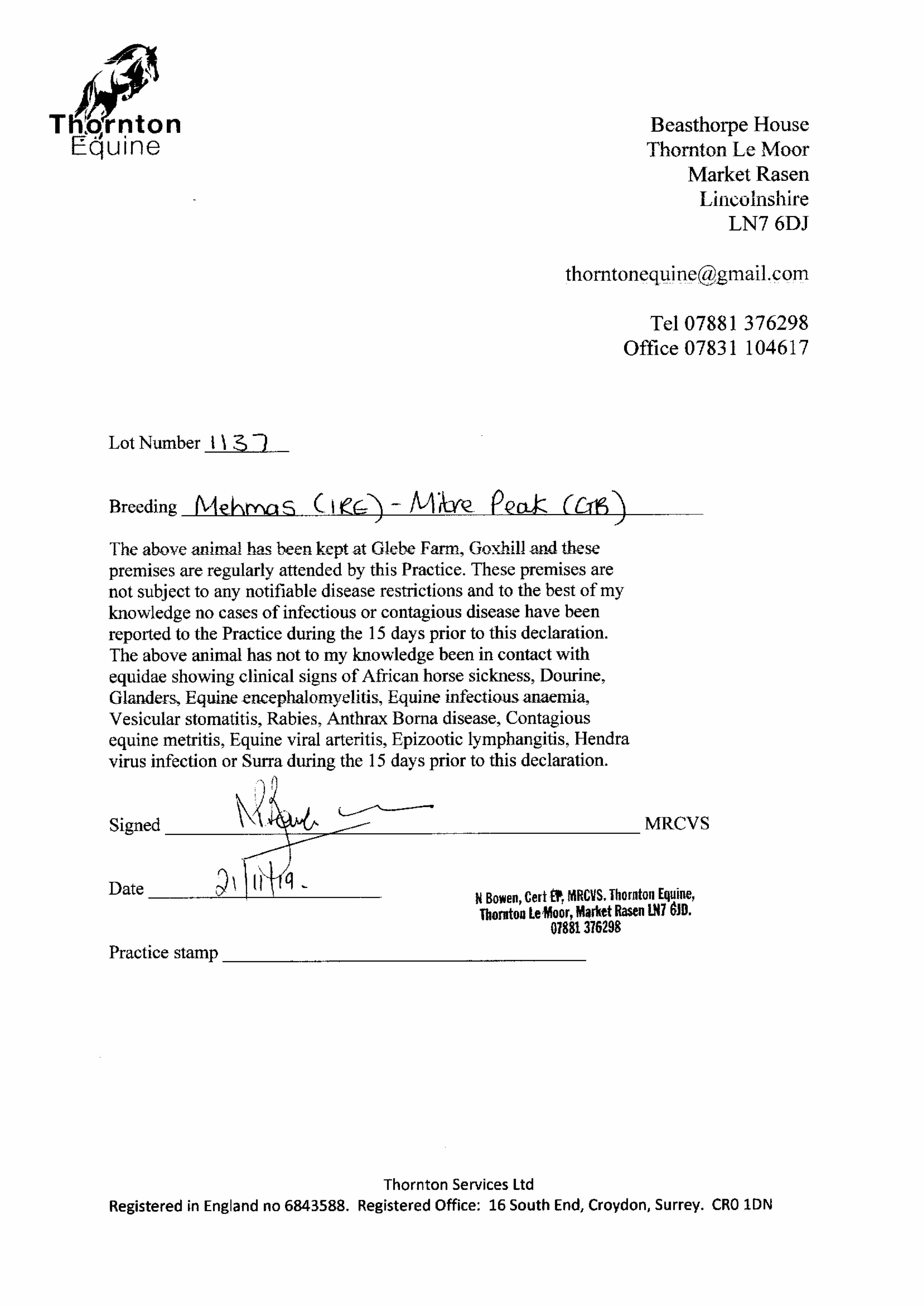 Consignor: Glebe Farm Stables