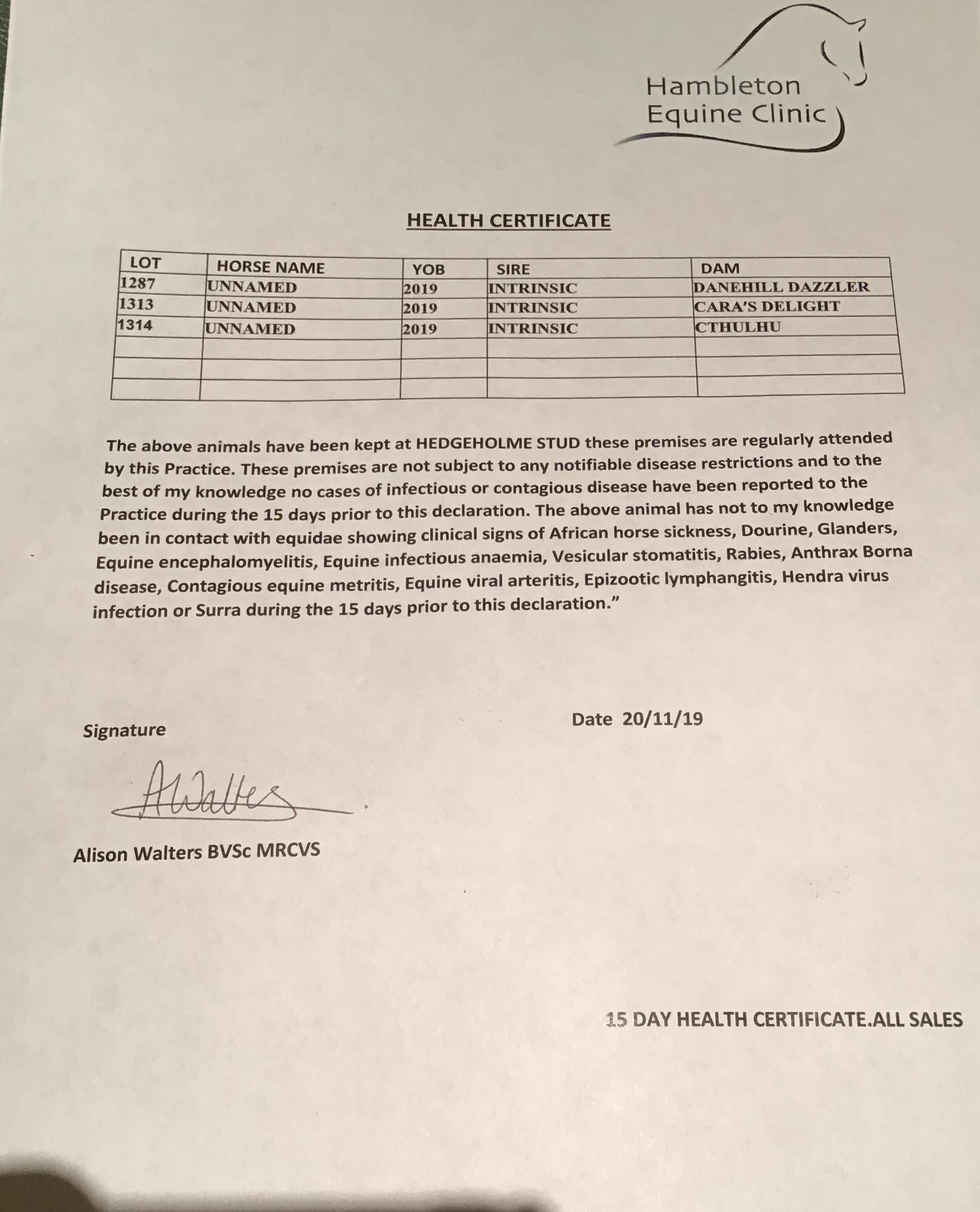 Consignor: Hedgeholme Stud