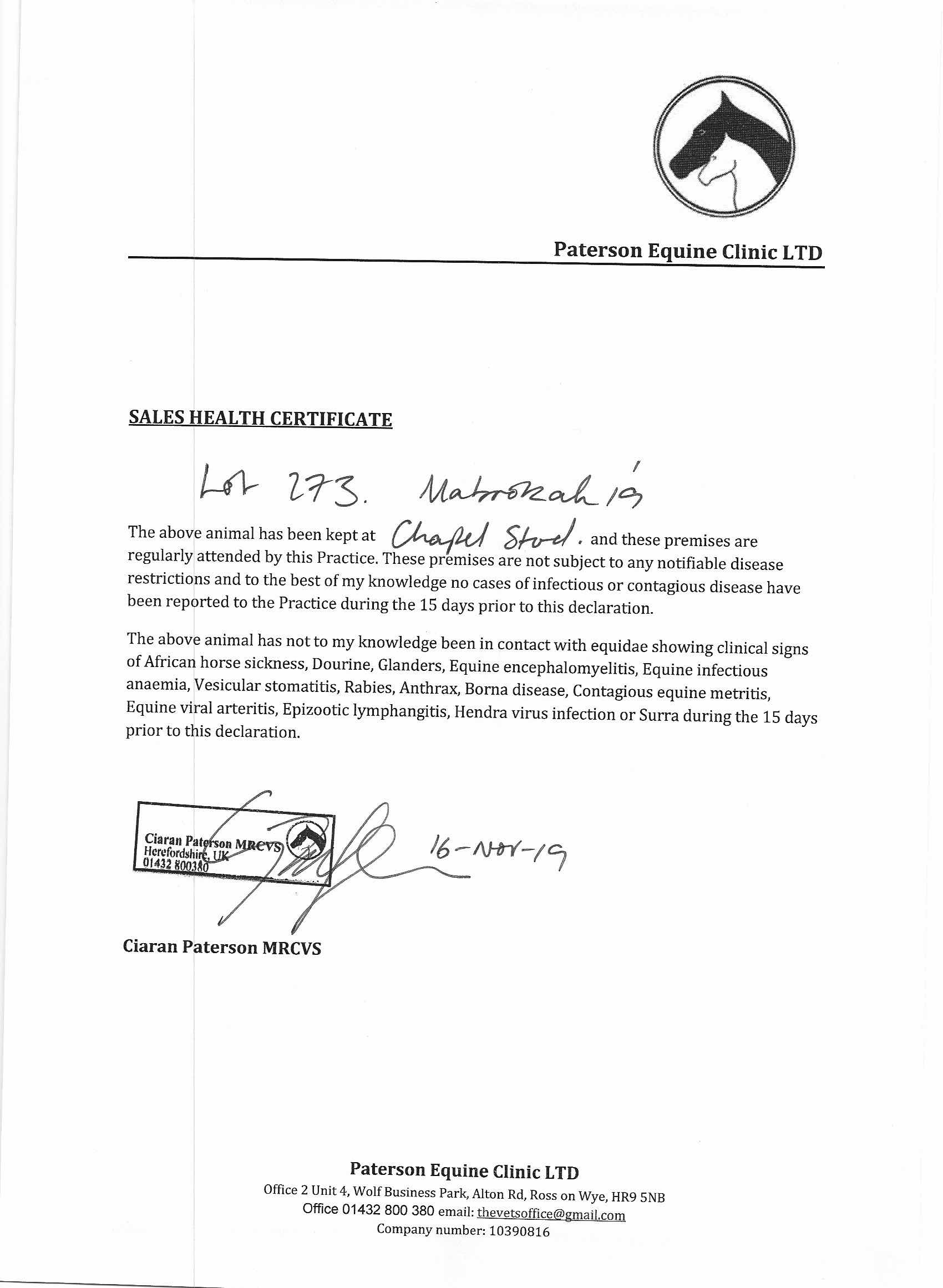 December Foal Sale 2020 lot 258 C. by Pearl Secret (GB) 2020, Chapel Stud=>Lot Not Sold