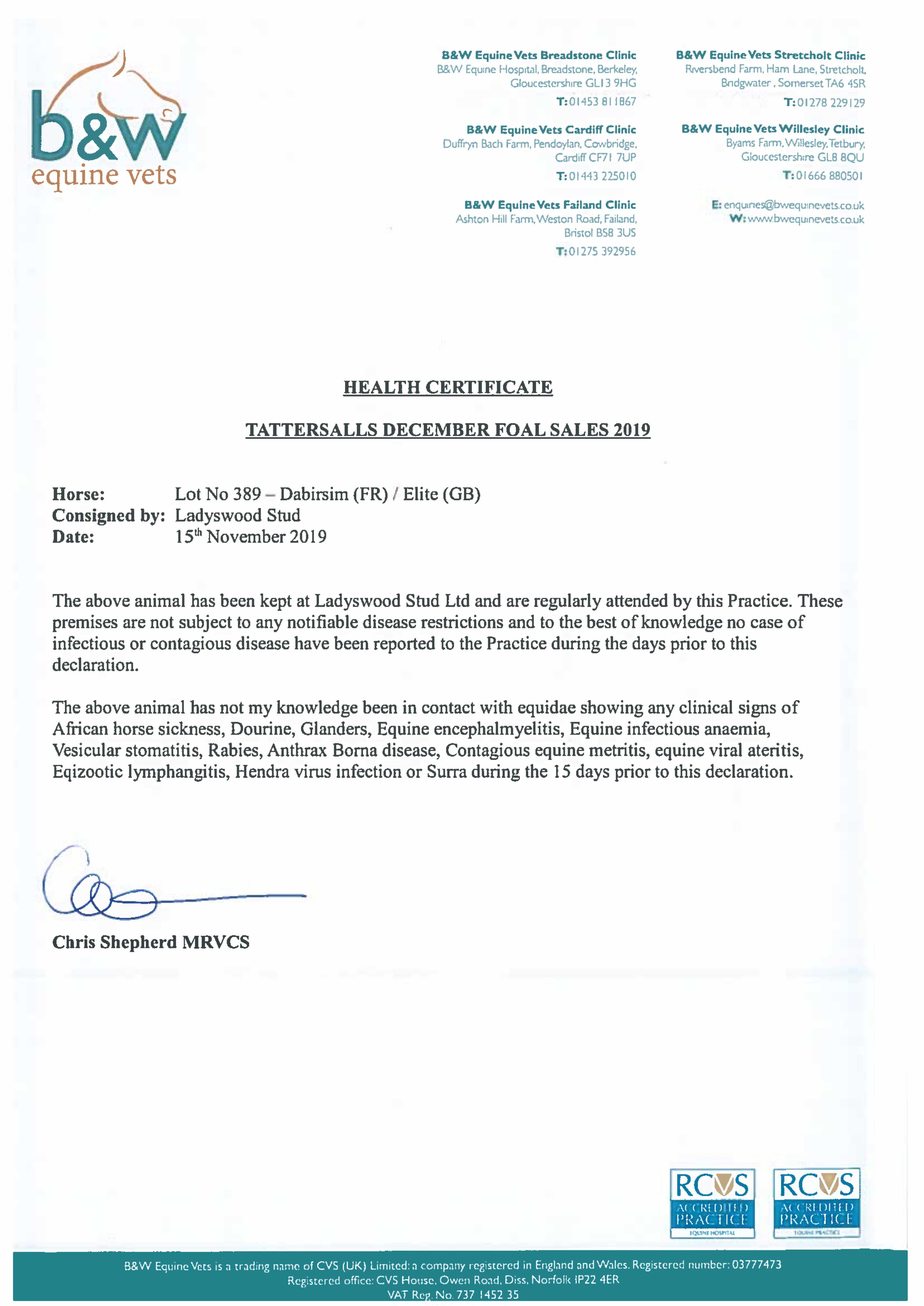 Consignor: Ladyswood Stud