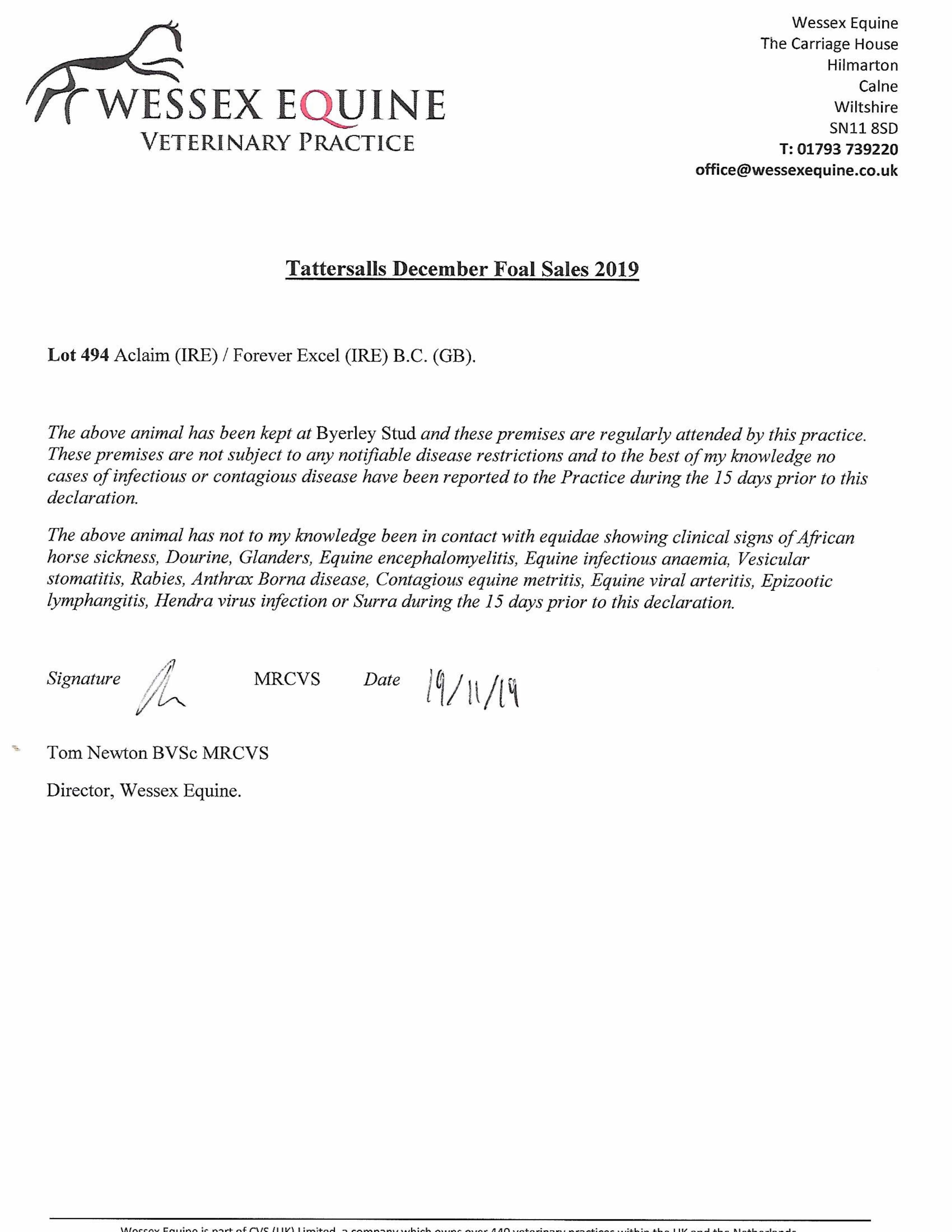 December Foal Sale 2023 lot 222 C. 2023, Byerley Stud=>Forever Racing 8,000 gns