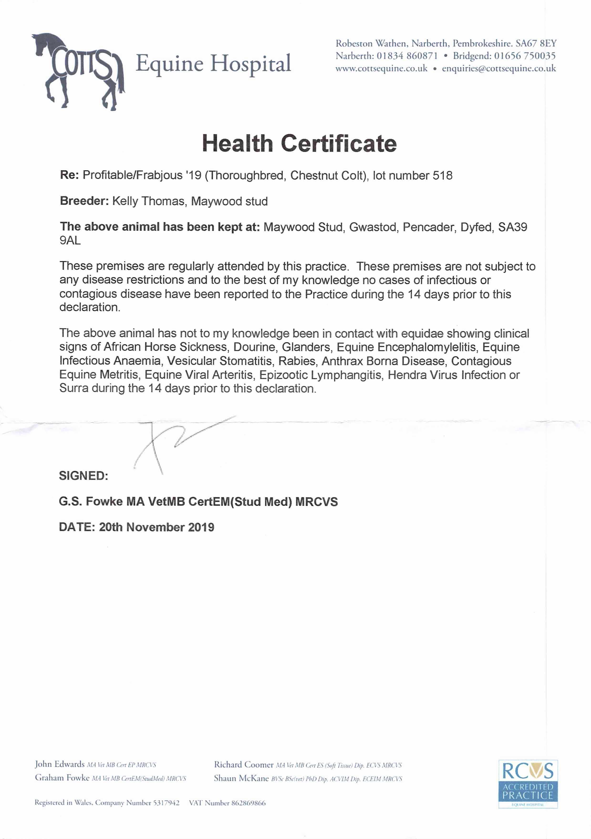Consignor: Maywood Stud