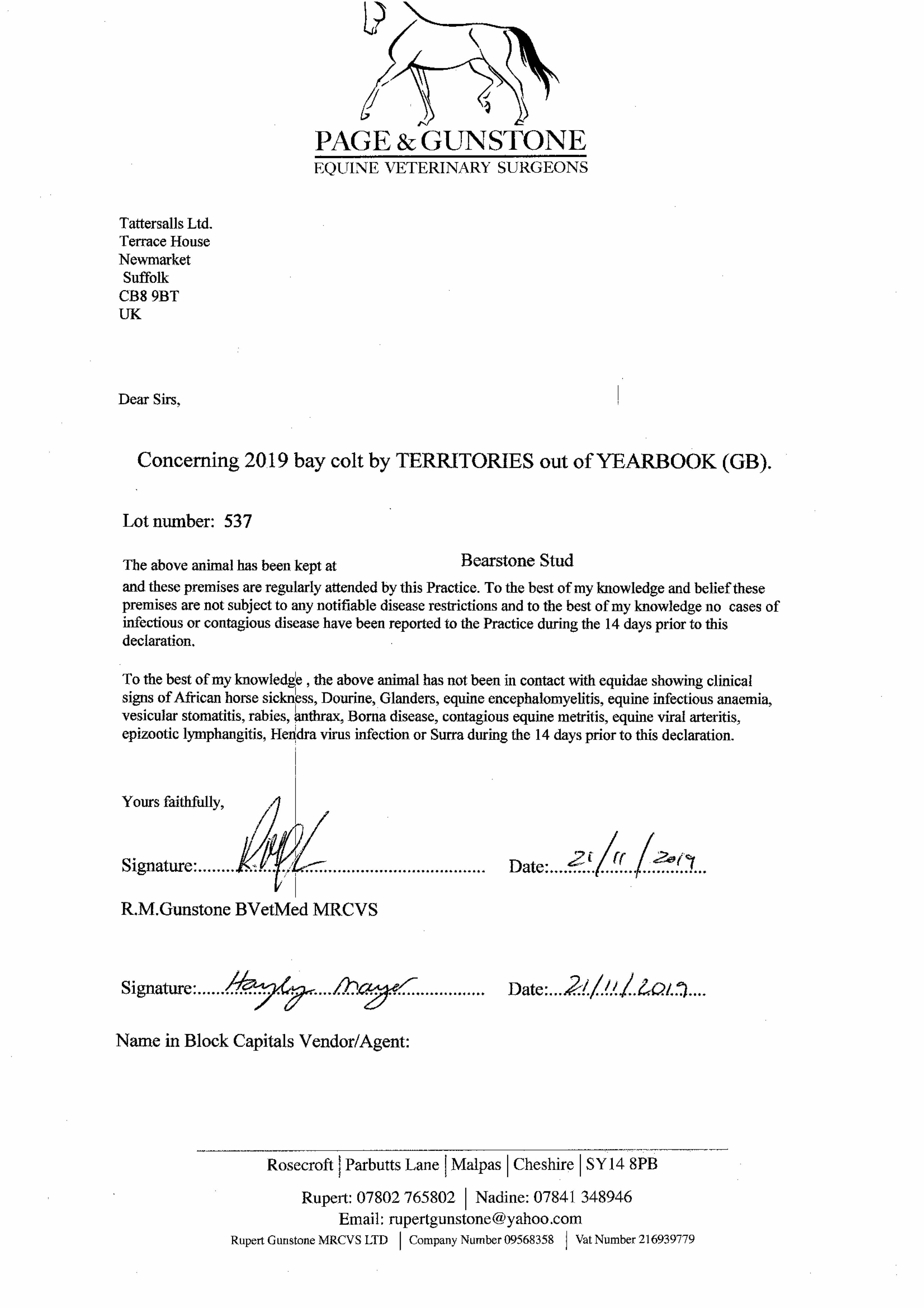 Consignor: Bearstone Stud
