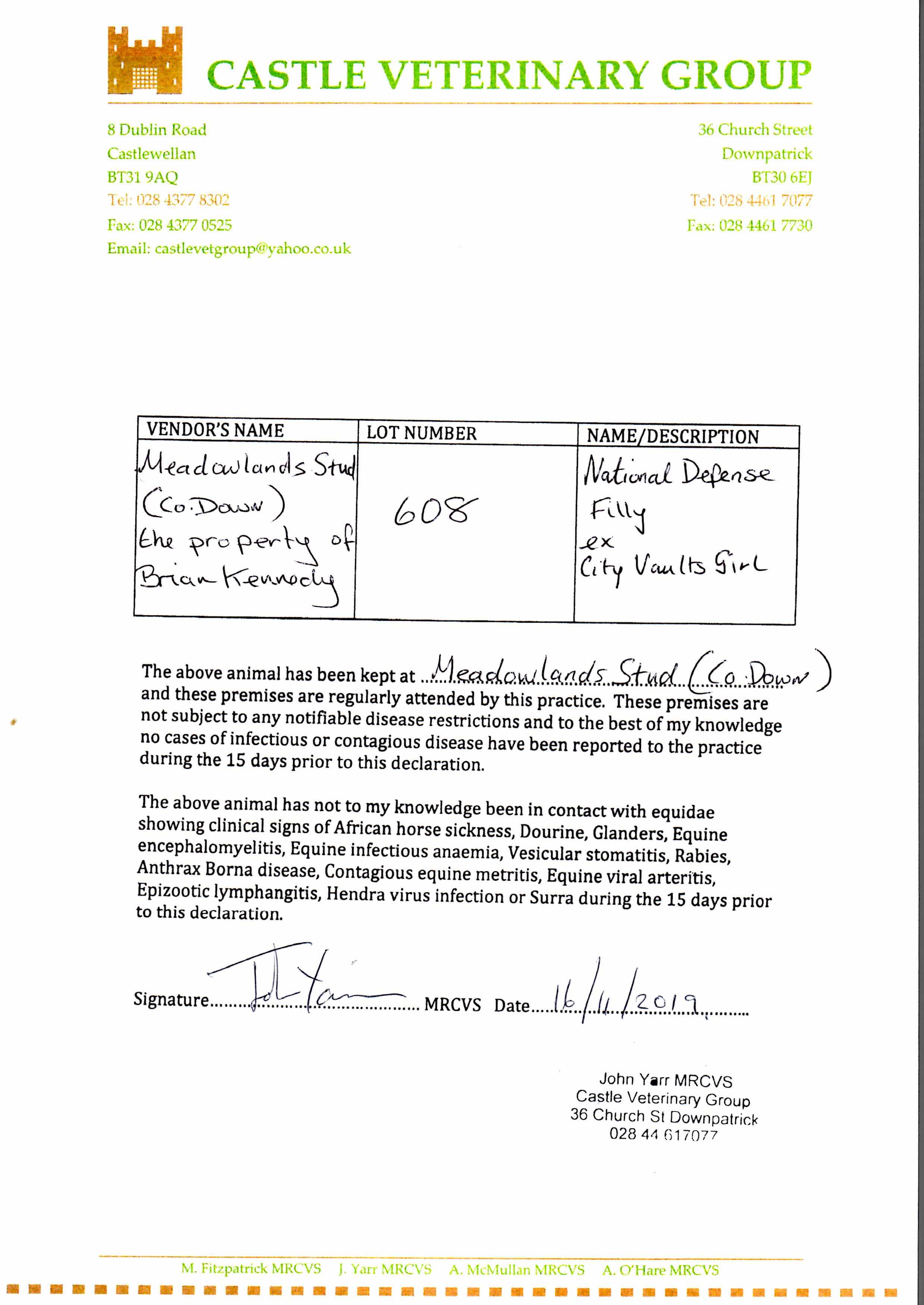 Consignor: Meadowlands Stud (Co. Down)