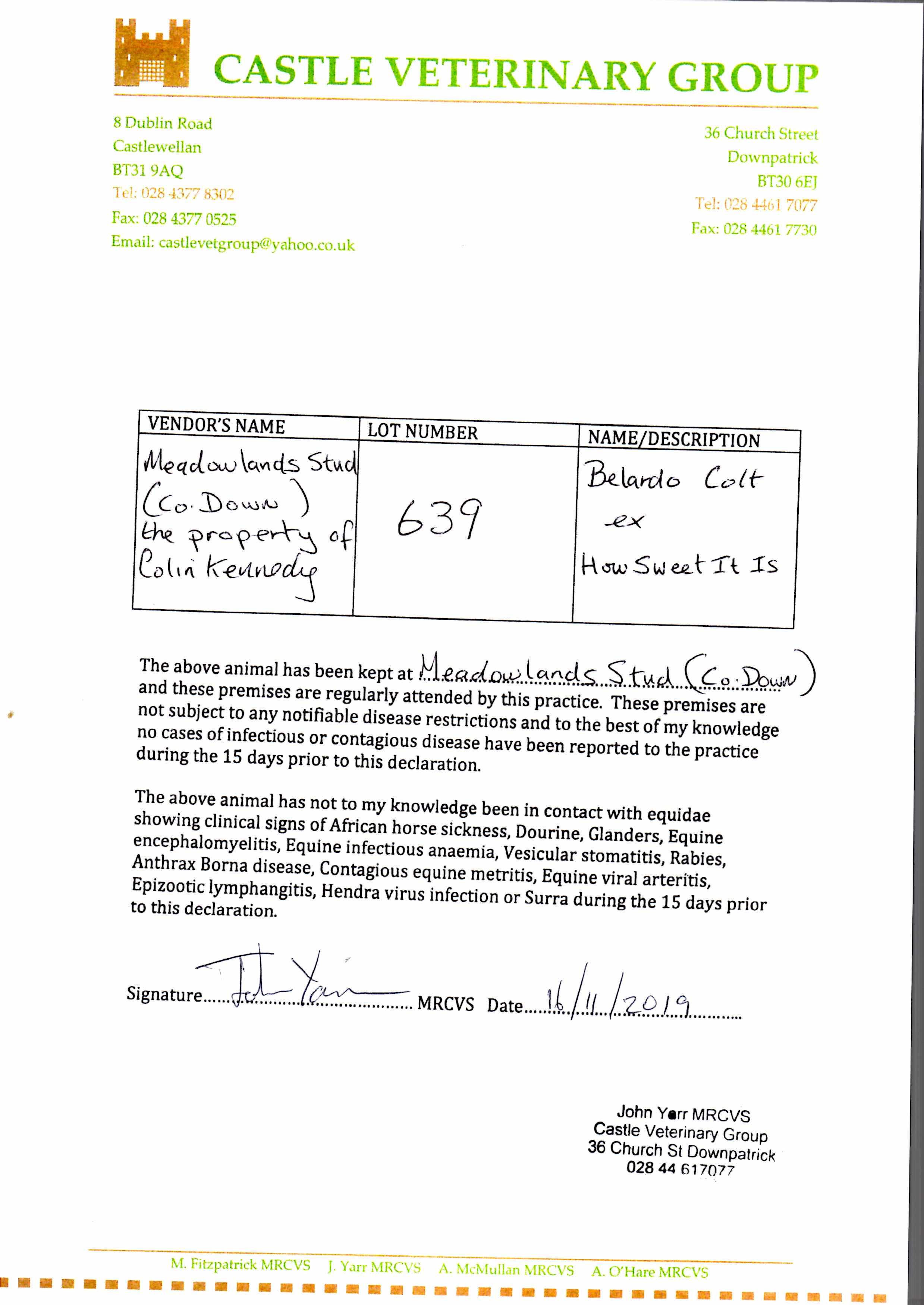 December Foal Sale 2016 lot 604 C. by Battle of Marengo (IRE) 2016, Meadowlands Stud (Co. Down)=>Mick Flanagan, Agent 10,000 gns
