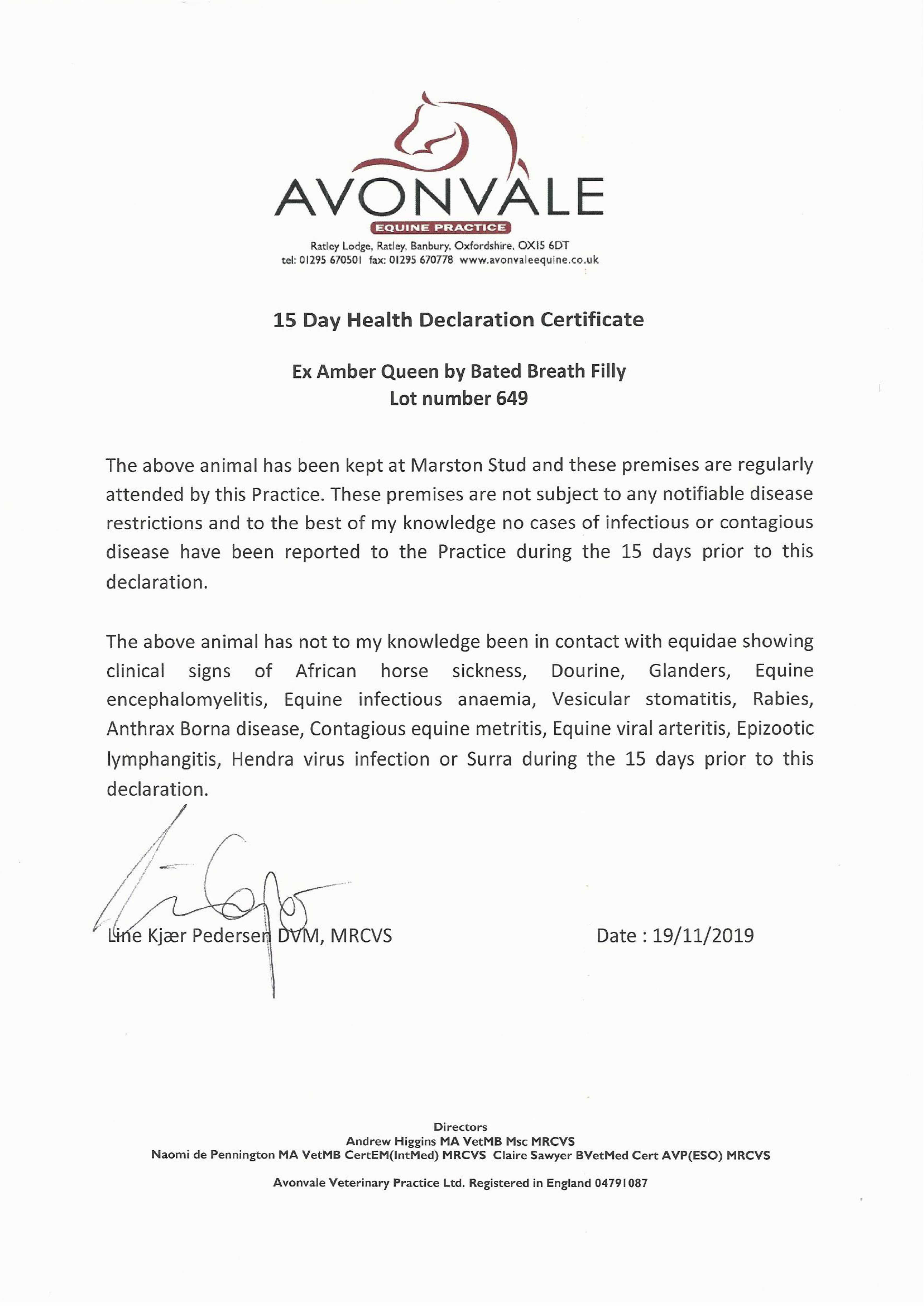 December Foal Sale 2018 lot 615 F. by Cable Bay (IRE) 2018, Norelands Stud, Ireland=>Lot Not Sold