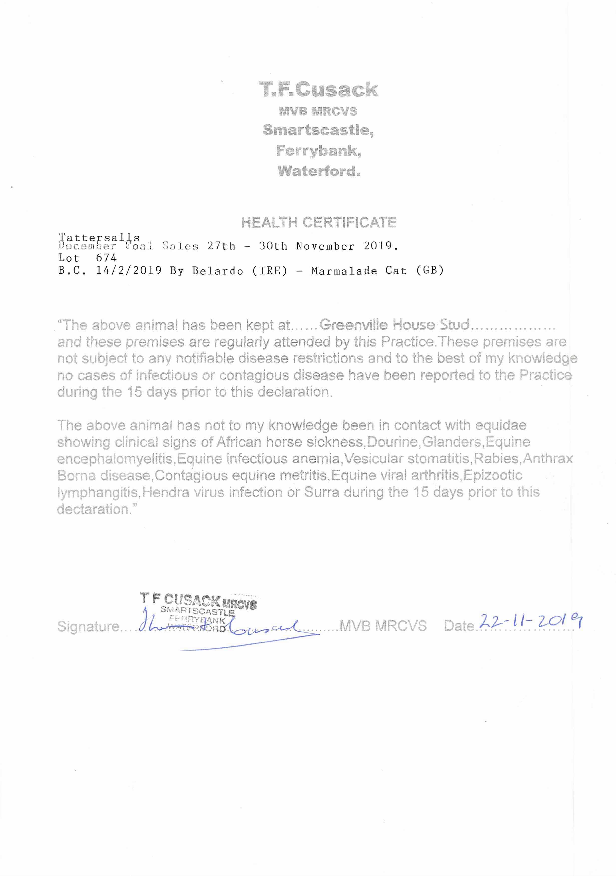 Consignor: Greenville House Stud, Ireland